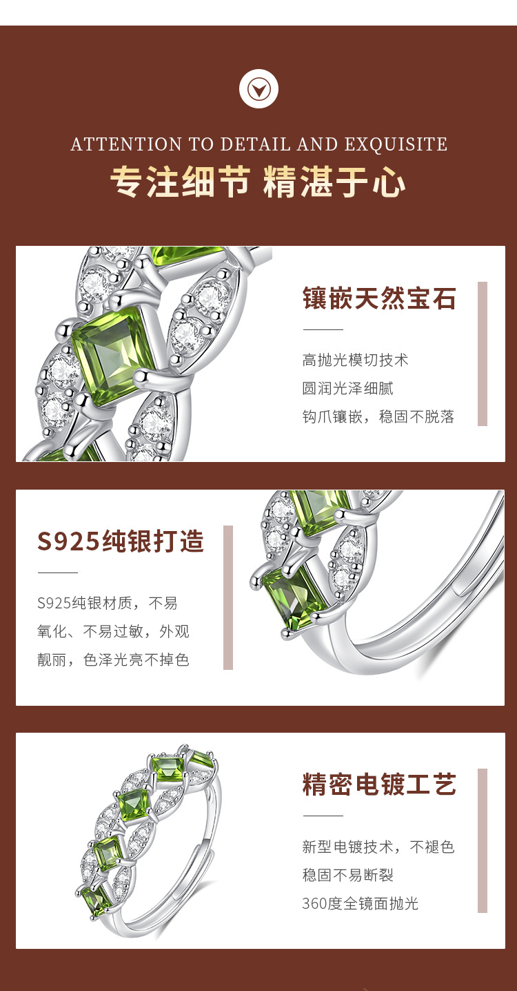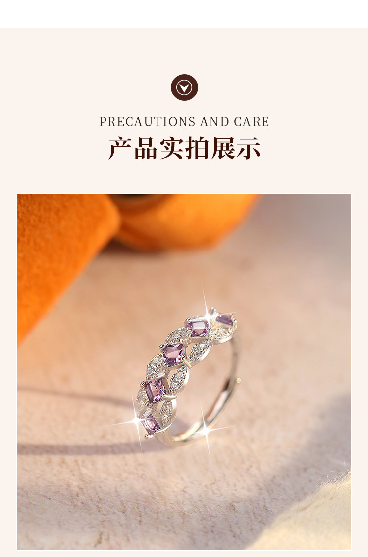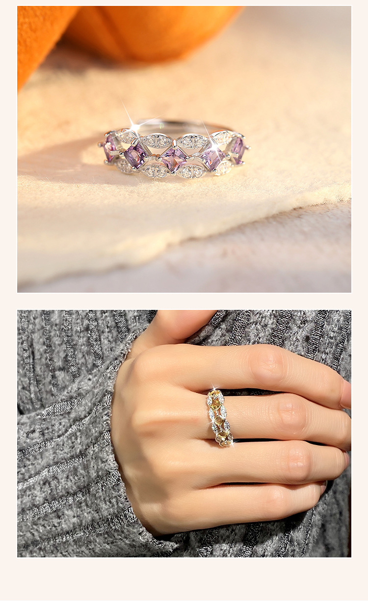 Anillo de fila de piedra de cristal natural de lujo ligero s925 anillo de plata de ley ajustable sin decoloración venta caliente transfronteriza accesorios de alta gama mujeres