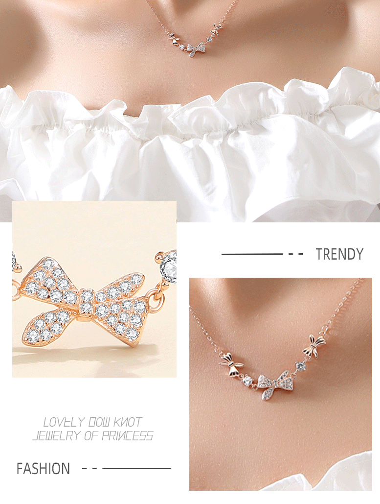 Japonés y coreano arco collar mujeres S925 plata nicho verano princesa clavícula cadena llena de regalos para la novia