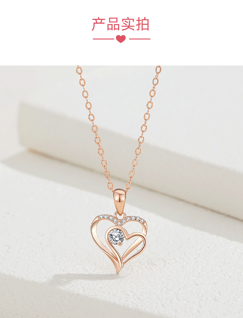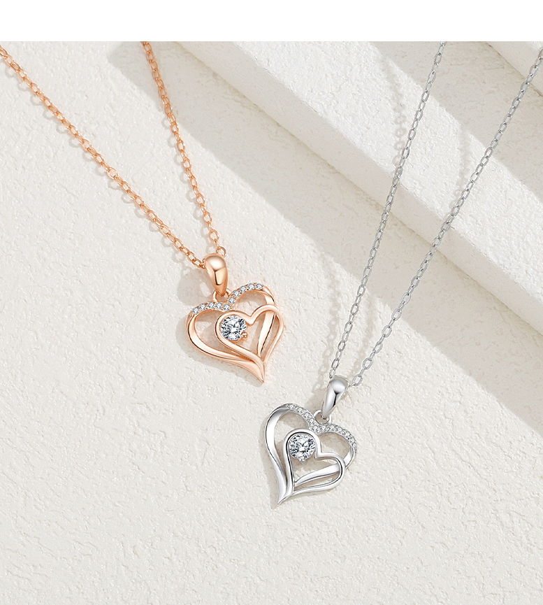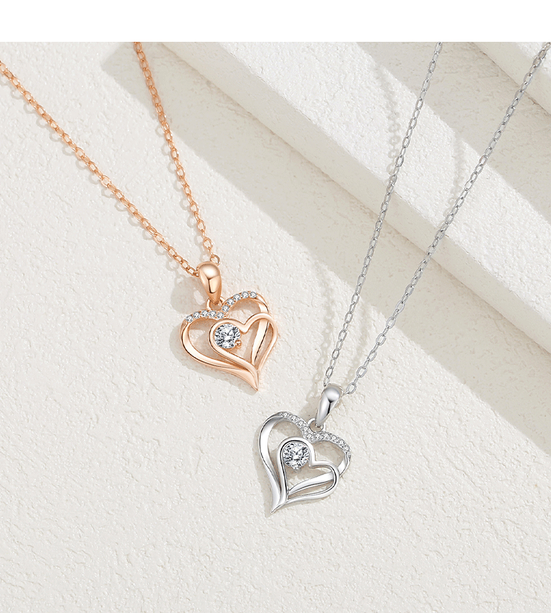 Collar de corazón doble europeo y americano 925 Plata en forma de corazón alto sentido clavícula cadena Amazon nicho ins viento transfronterizo al por mayor caliente