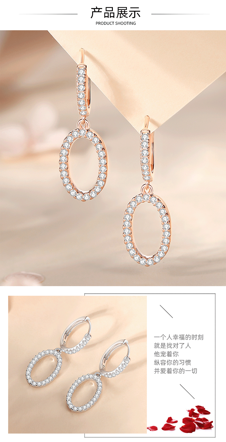 Joyería de circón con incrustaciones frescas con incrustaciones de diamantes geométricos incrustados en diamantes para mujeres Hebilla de oreja de anillo de diamante completo de plata S925 de lujo ligero