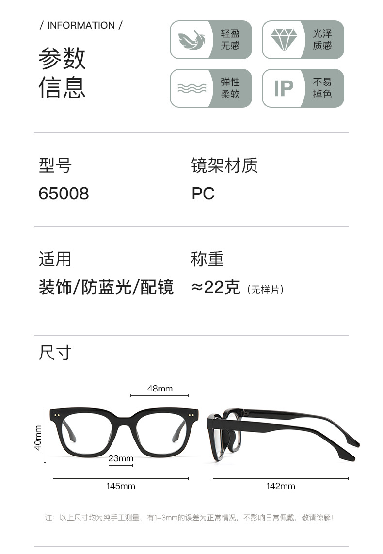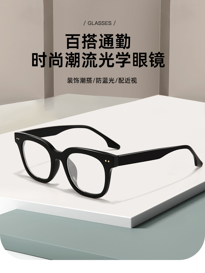 Gafas de marco negro de estilo japonés enmarcan la cara redonda de moda de los hombres marco grande gafas de miopía de luz anti-azul gafas de mujer cuadradas lisas