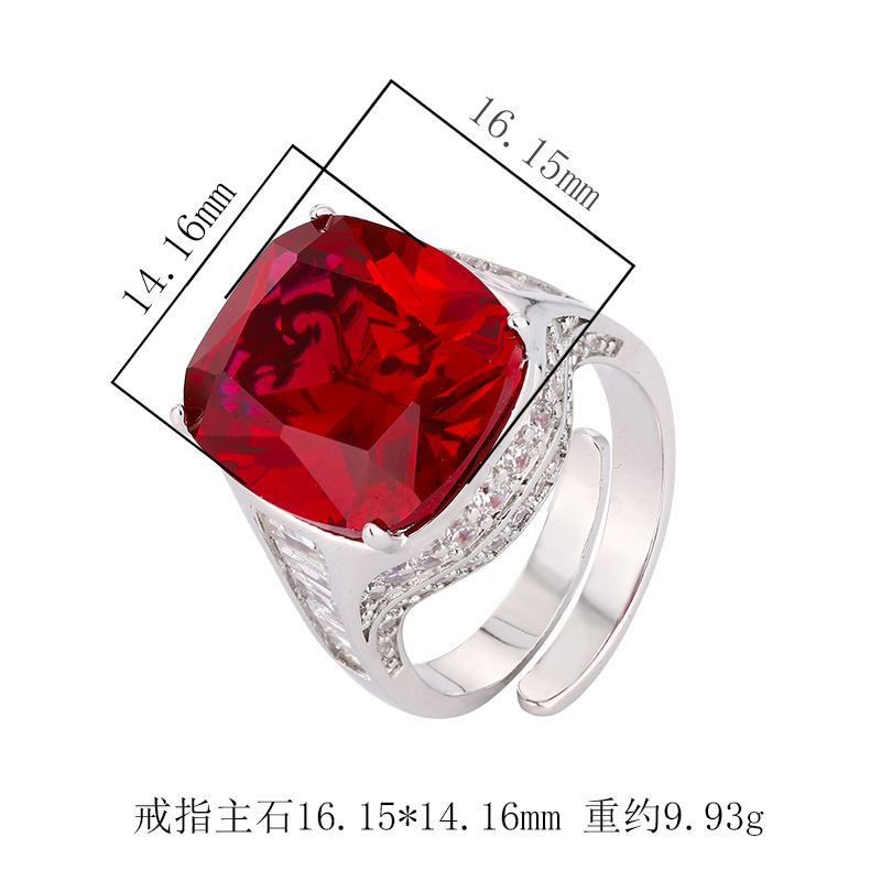 2024 Zhuangshengsheng Jewelry Fondo de cobre chapado en oro simulación de moda retro corindón gordo anillo cuadrado femenino 14*16 al por mayor