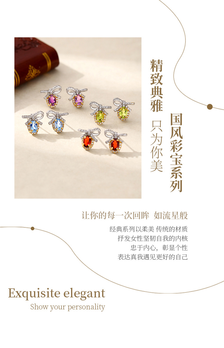 Pendientes de plata de ley S925 con lazo de lujo ligero de nicho, anillo de tesoro de color natural femenino, joyería de alta calidad, joyería que no se desvanece
