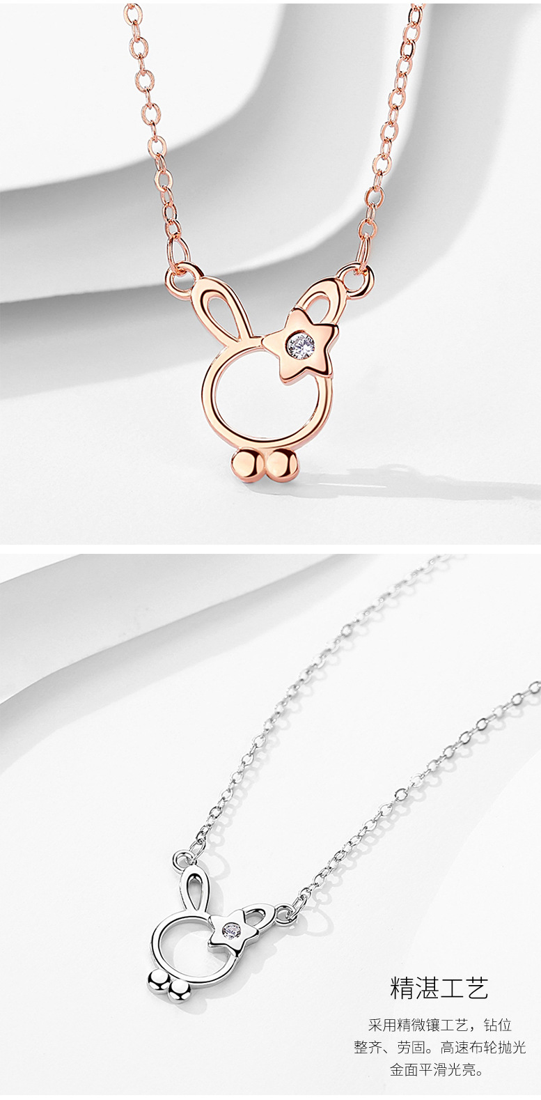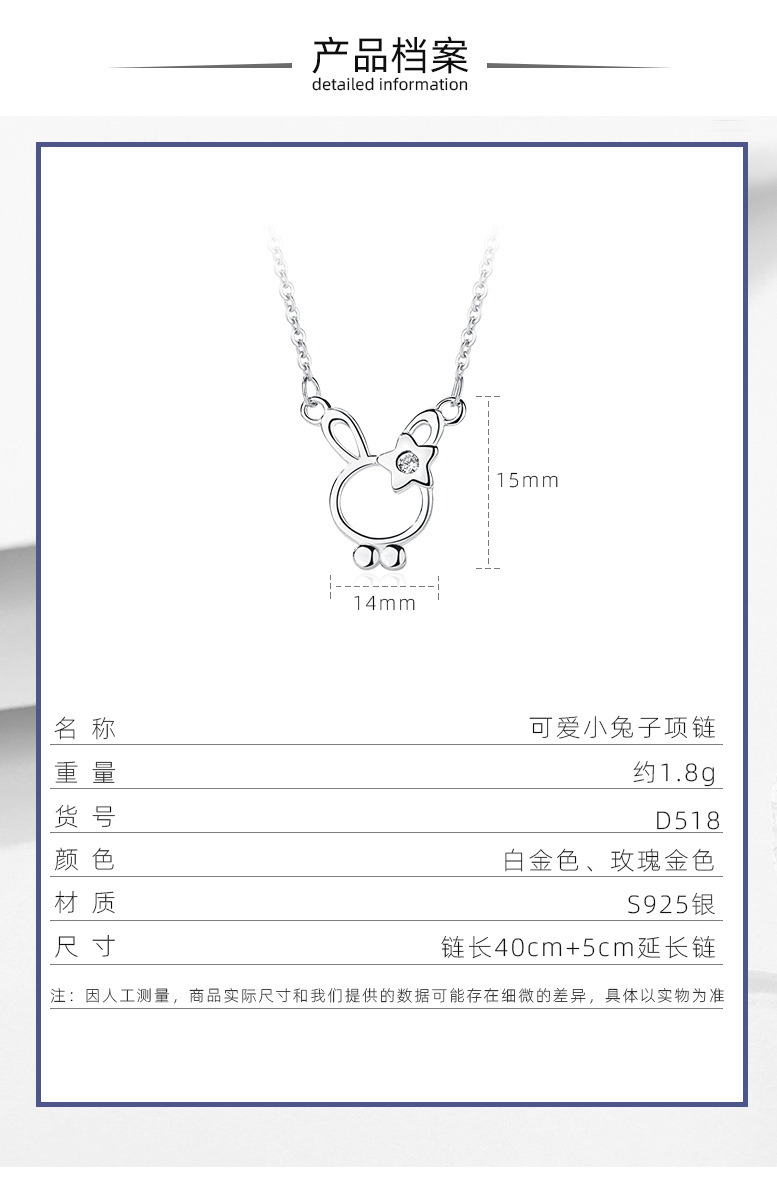 Collar de conejo de plata esterlina S925, diseño de nicho, temperamento simple, cadena de clavícula de lujo ligero, accesorios simples japoneses y coreanos