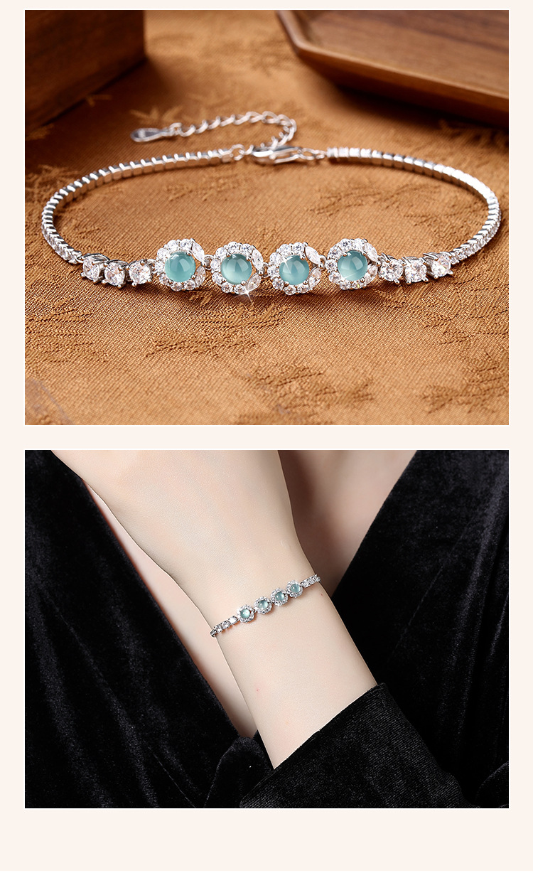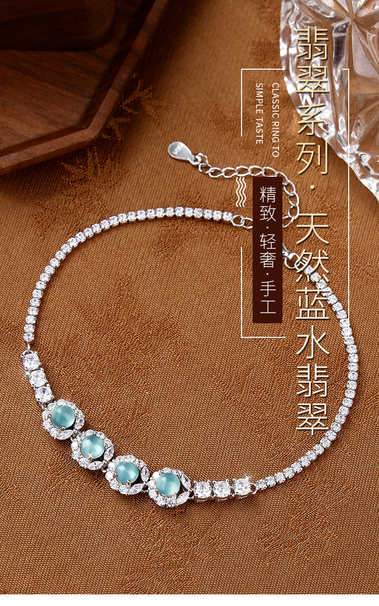 Pulsera de jade S925 plata con diamantes completos, exquisito lujo ligero, joyería de mano de agua azul natural para mujer, moda OL todos los días, mujer salvaje
