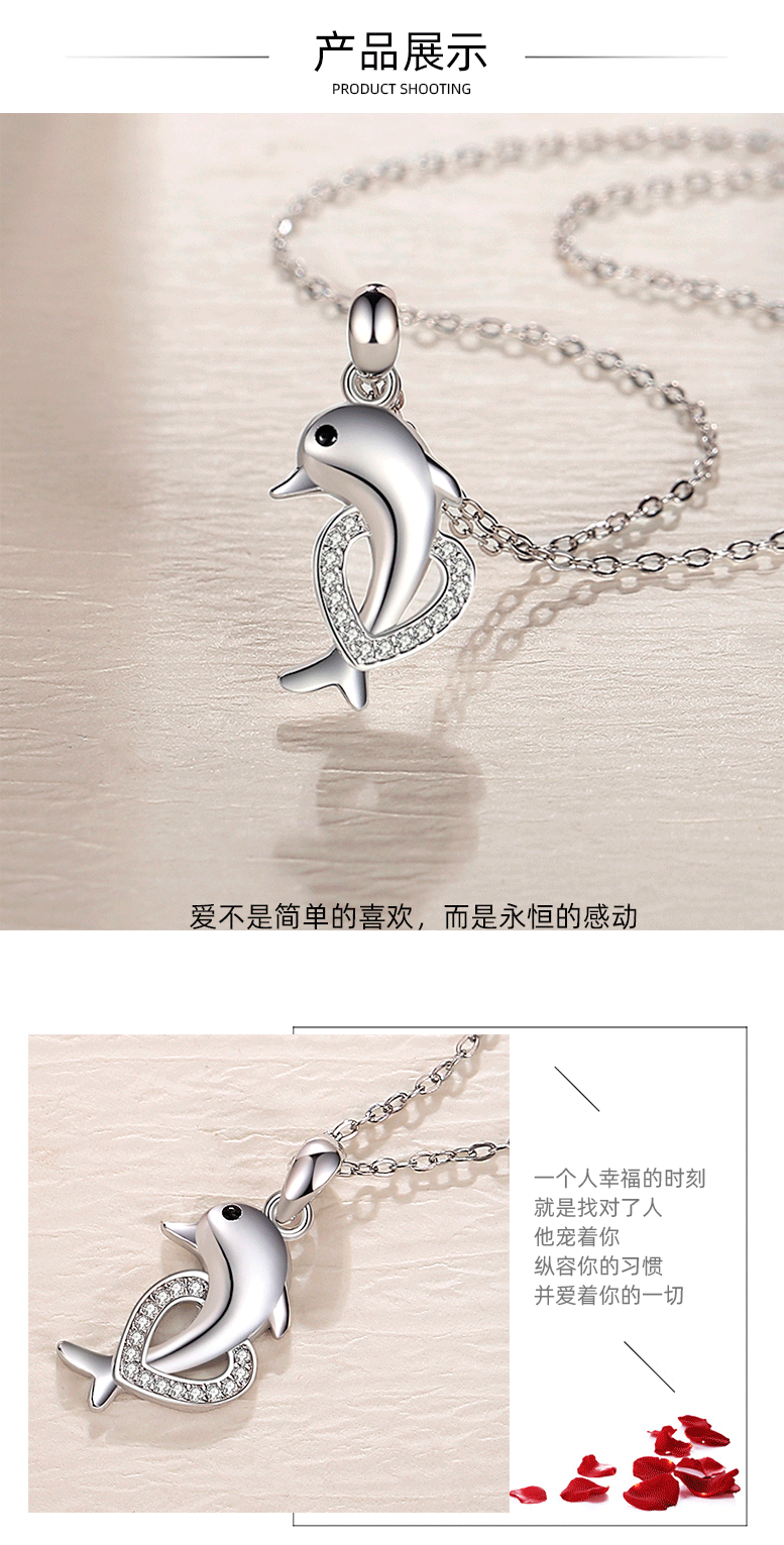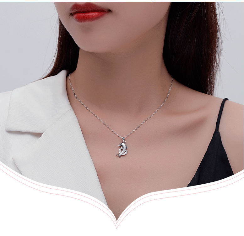 S925 plata esterlina delfín amor collar femenino neto rojo fresco Delfín de dibujos animados colgante clavícula cadena cuello