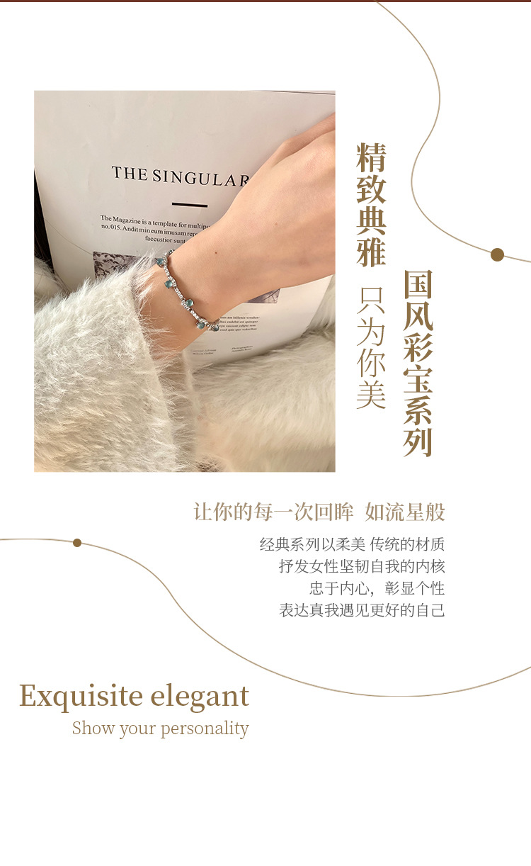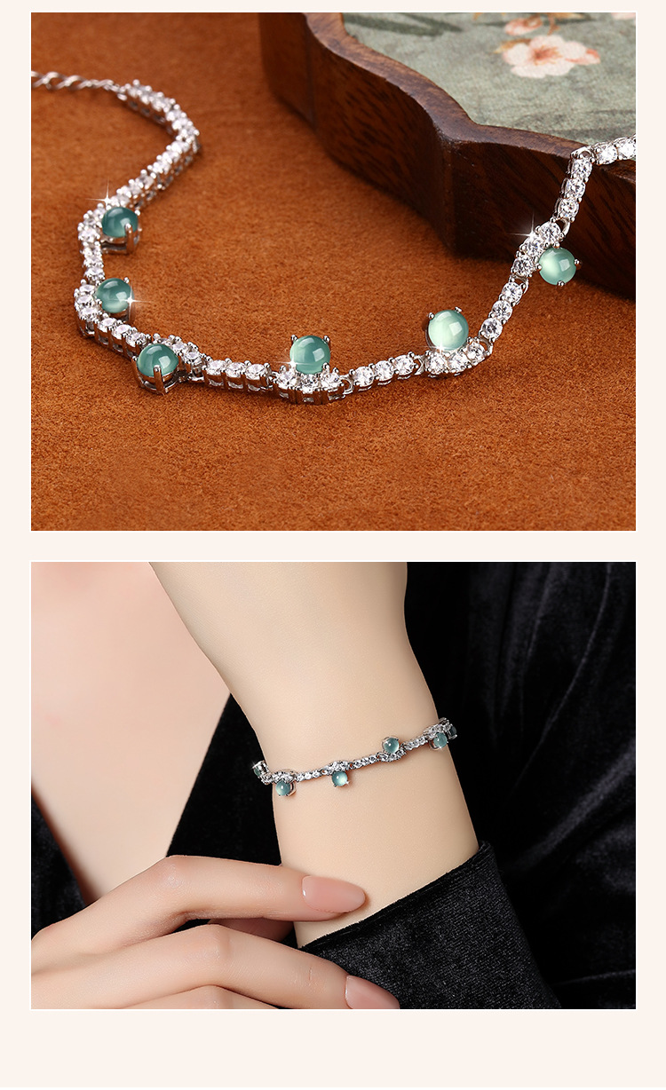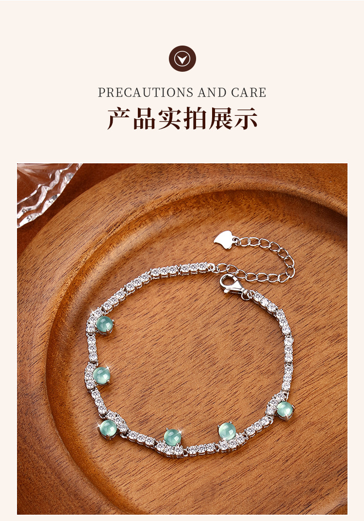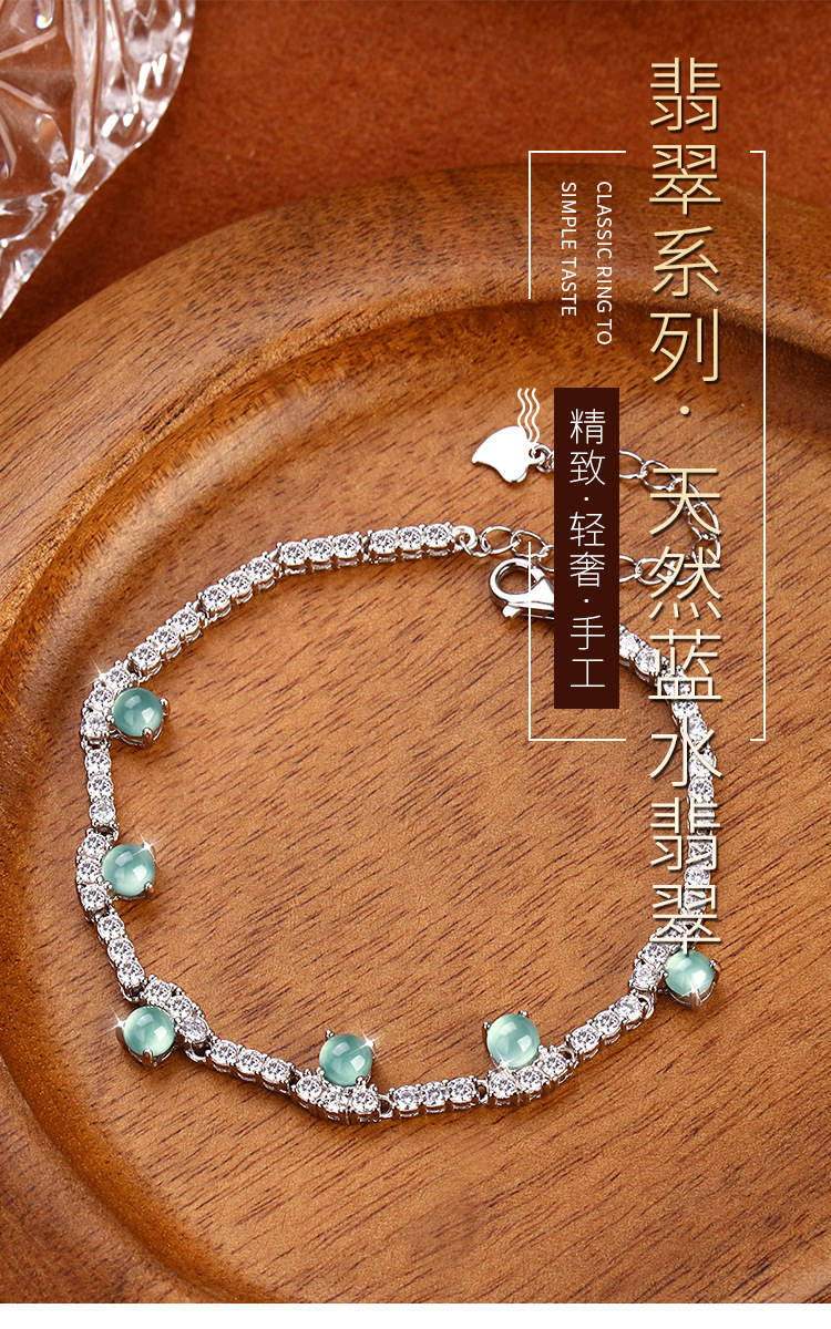 Joyas de agua azul de jade natural s925 pulsera de plata esterlina para mujer, retro de alta gama, sentido exquisito, joyería de plata que no se desvanece