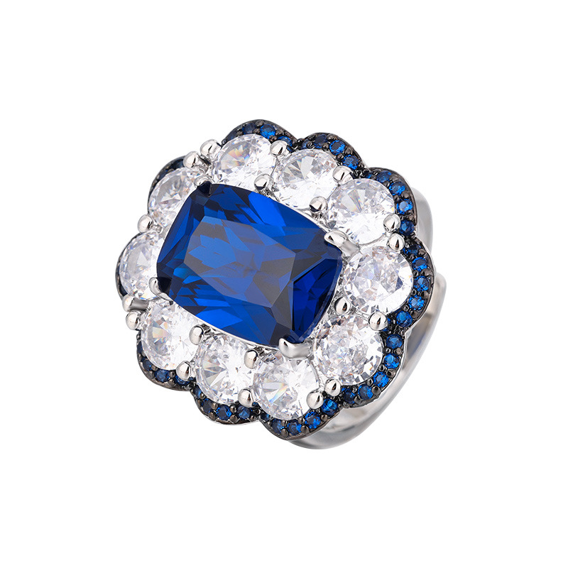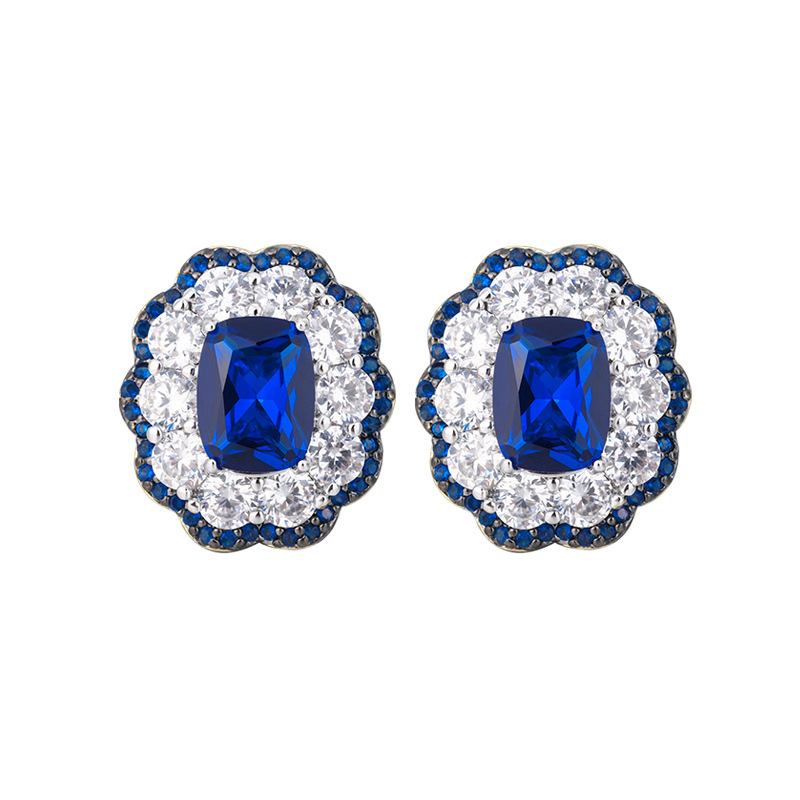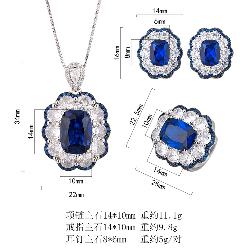 Zhuang sheng joyas cobre inferior chapado en oro conjunto de joyas simulación azul señaló cristal avanzado retro conjunto femenino 10*14-8*10