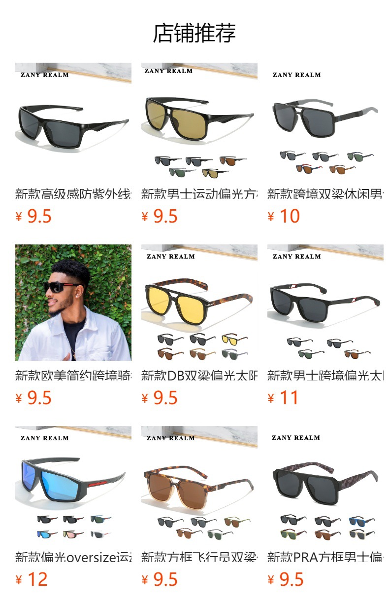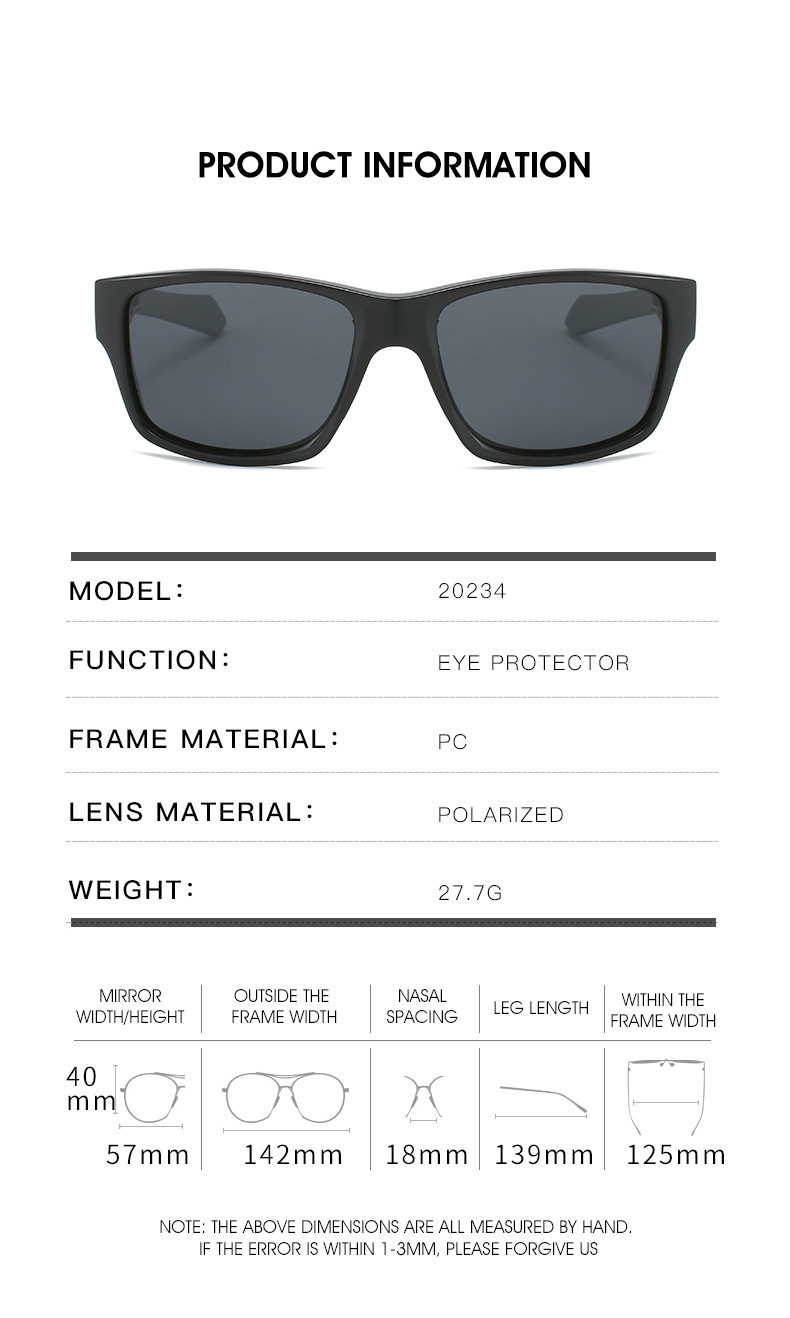 Nuevos deportes de los hombres polarizados transfronteriza gafas de sol deportivas británica simple casual gafas de sol cuadradas fabricante en stock