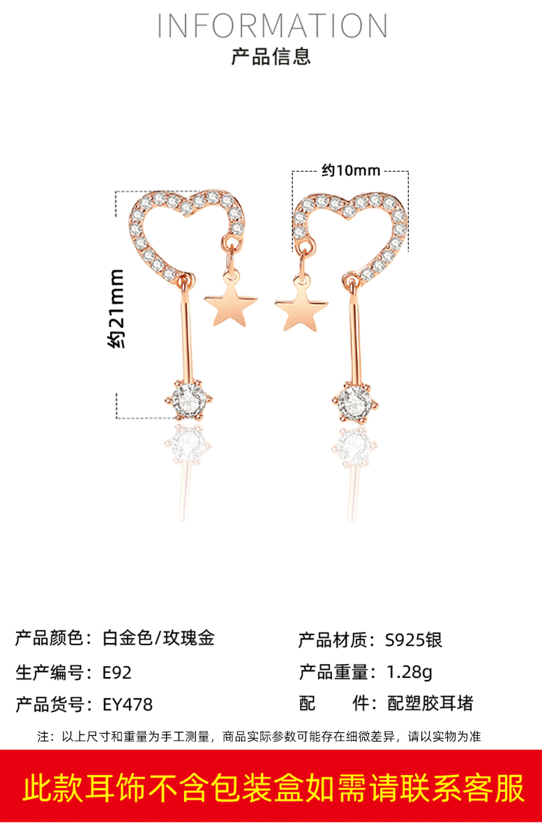 | Color | EY478 oro blanco (con tapones para los oídos de plástico),EY478 oro rosa (con tapones de plástico) |