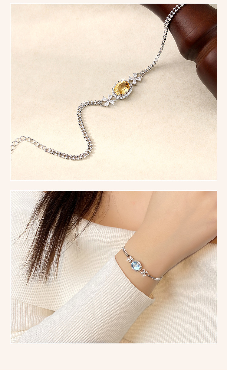 Alta calidad sin decoloración S925 plata esterlina topacio natural amatista amarilla tesoro color pulsera pulsera joyería al por mayor