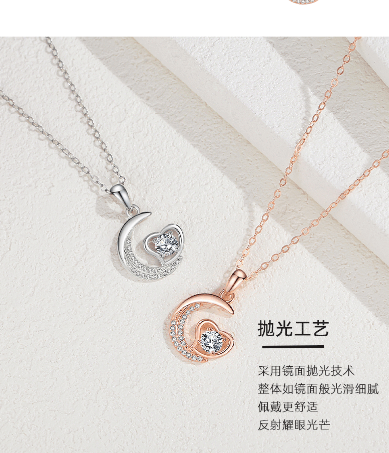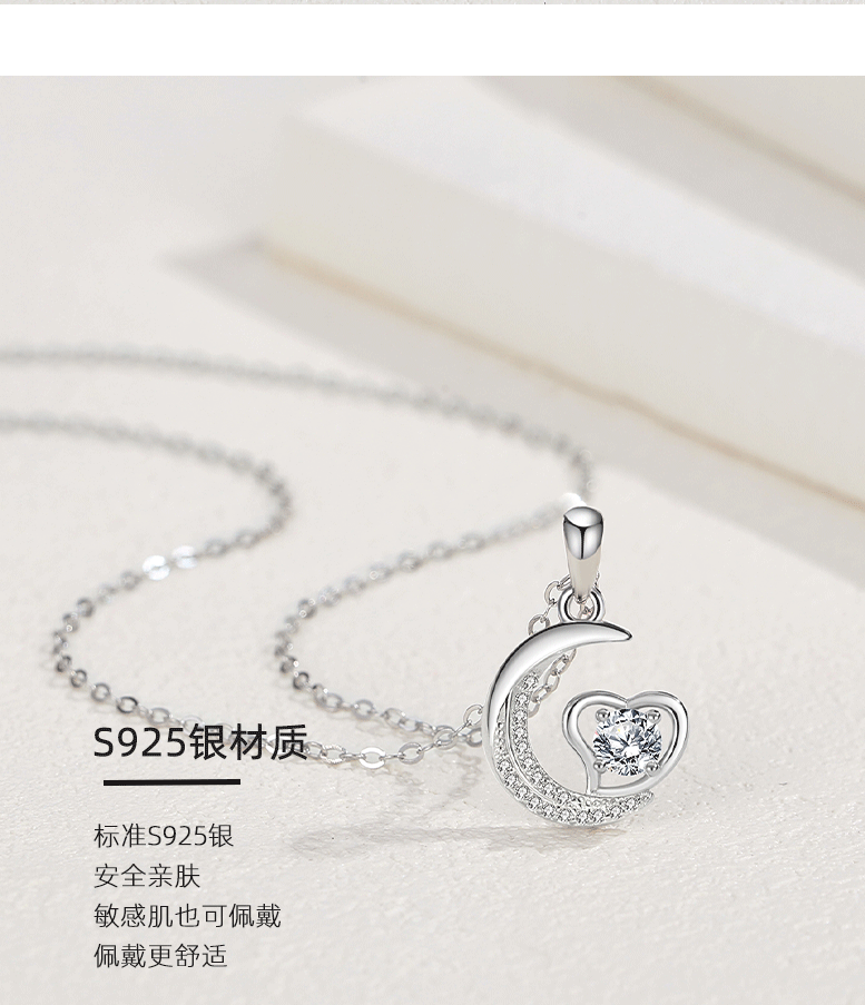 Estilo coreano corazón Luna collar mujer S925 plata esterlina nicho collar Luna amor verano romántico moda regalo del día de San Valentín