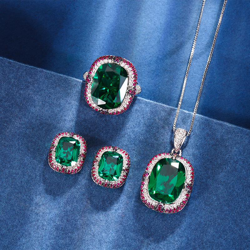 2024 nueva joyería Zhuang Shengsheng estilo europeo y americano simulación esmeralda salto color retro traje principal piedra 12*16-8*10