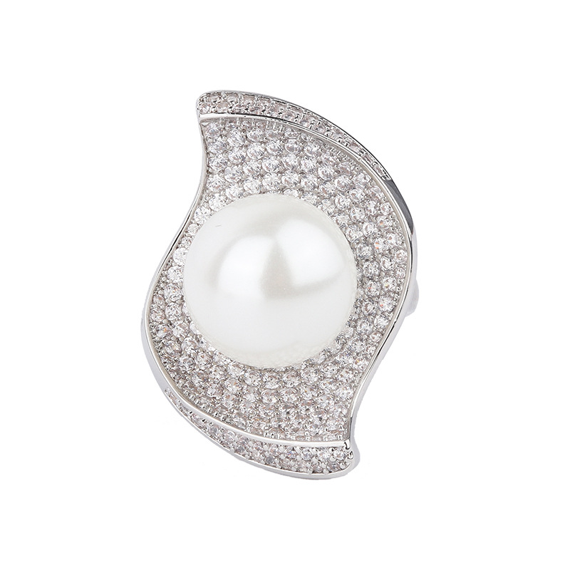 Zhuang Sheng joyería de cobre inferior chapado en oro con incrustaciones de perlas blancas moda coreana diamante incrustado textura traje 14mm al por mayor