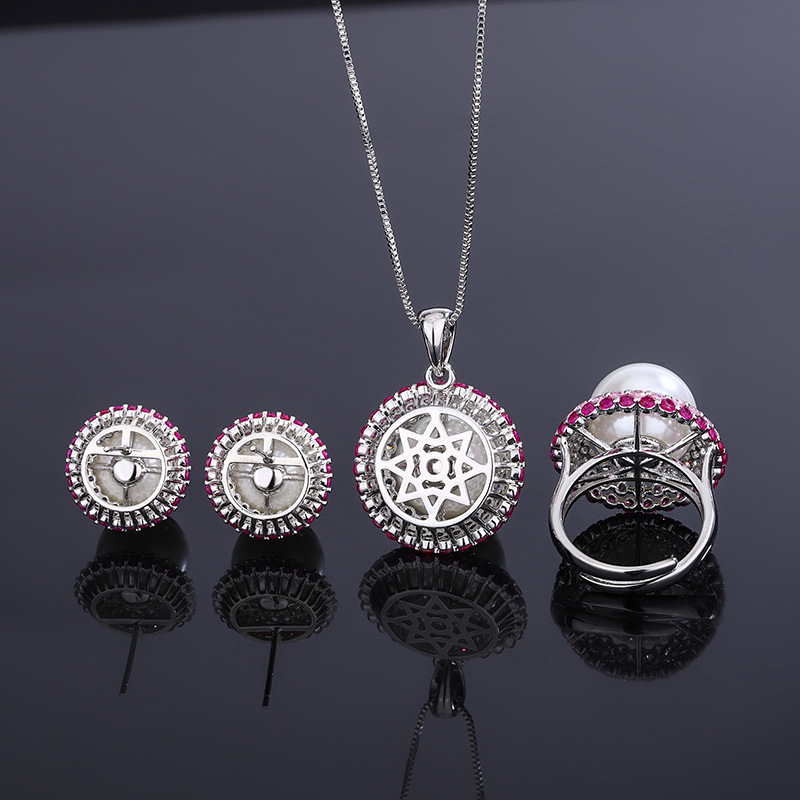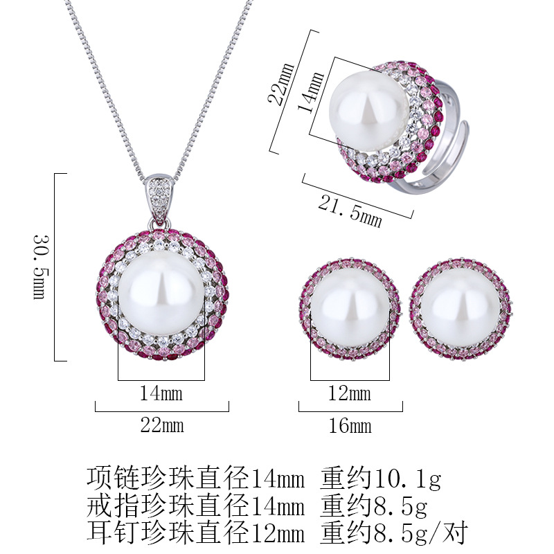 Zhuang Sheng joyería fondo de cobre chapado en oro simulación color tesoro con incrustaciones de color blanco perla salto de tres piezas traje femenino 14-12mm