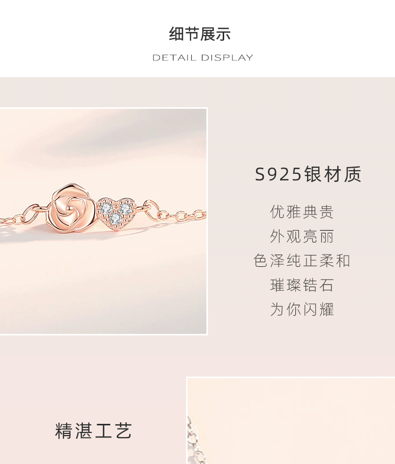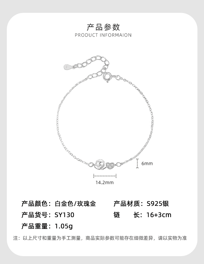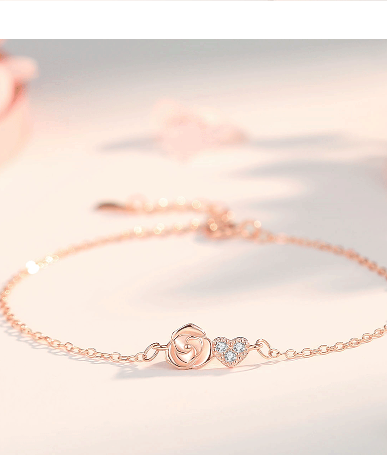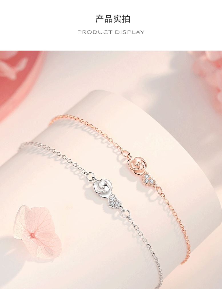 Xiaohongshu 925 pulsera de flor de rosa de plata esterlina amor femenino bosque todo fósforo arte micro incrustaciones estilo joyería de mano al por mayor