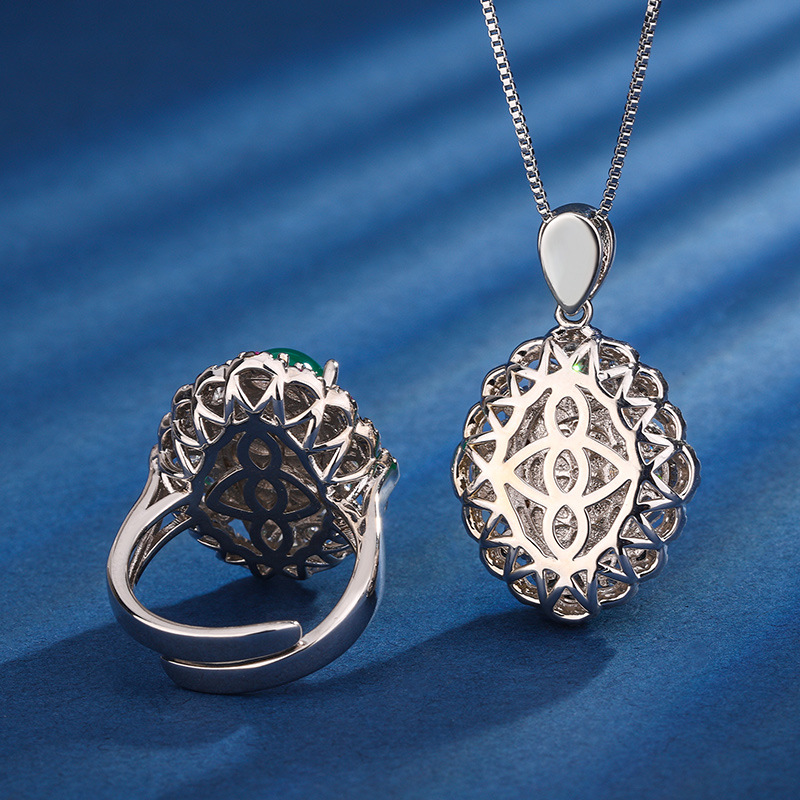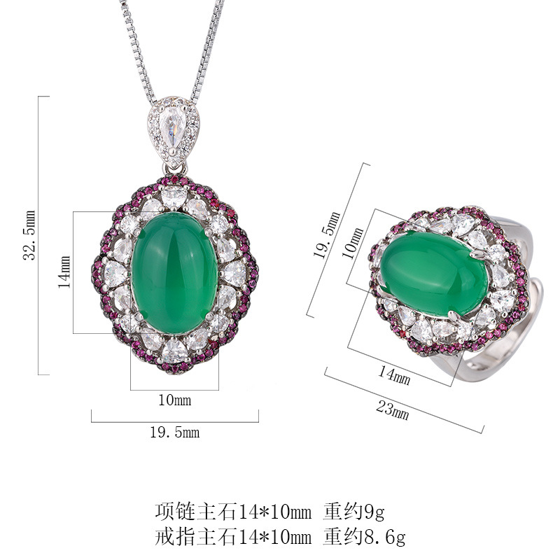 Zhuang Sheng joyas fondo de cobre chapado en oro de hielo plantación fluorescente simulación verde Calcedonia llanura temperamento superficie traje 10*14