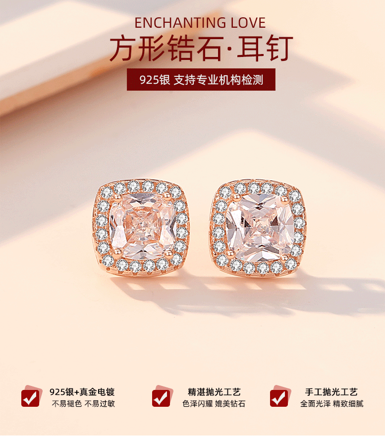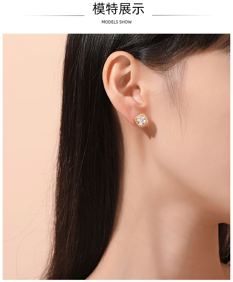 Cubo geométrico azúcar aretes de plata esterlina 925 luz de lujo cuadrado diamantes incrustados pendientes de moda nicho diseño ins joyería de plata