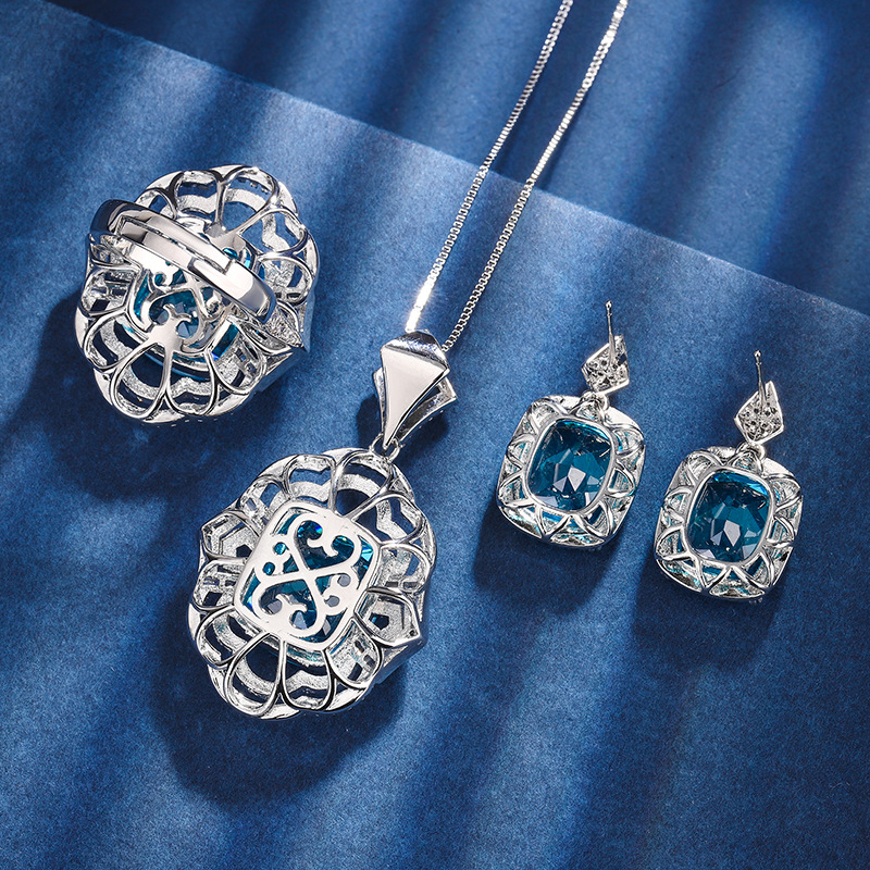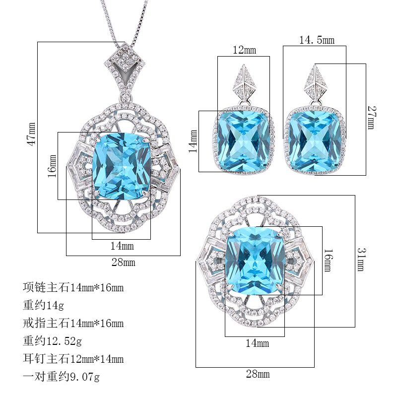 Zhuang Sheng joyería fondo de cobre chapado en oro simulación aguamarina hueco conjunto de las mujeres colgante anillo 4*16 espárragos 12*14