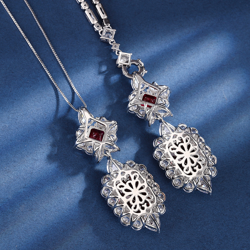 Zhuang Sheng joyas fondo de cobre chapado en oro Esmeralda artificial rojo corindón cuadrado de lujo colgante collar femenino 13*18-8 *