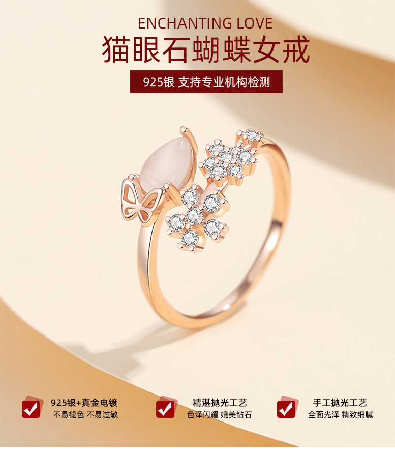 Pequeño anillo de mariposa 925 Plata estilo coreano flor fresca anillo de las mujeres Corea del Sur nicho alto sentido ins estilo joyería