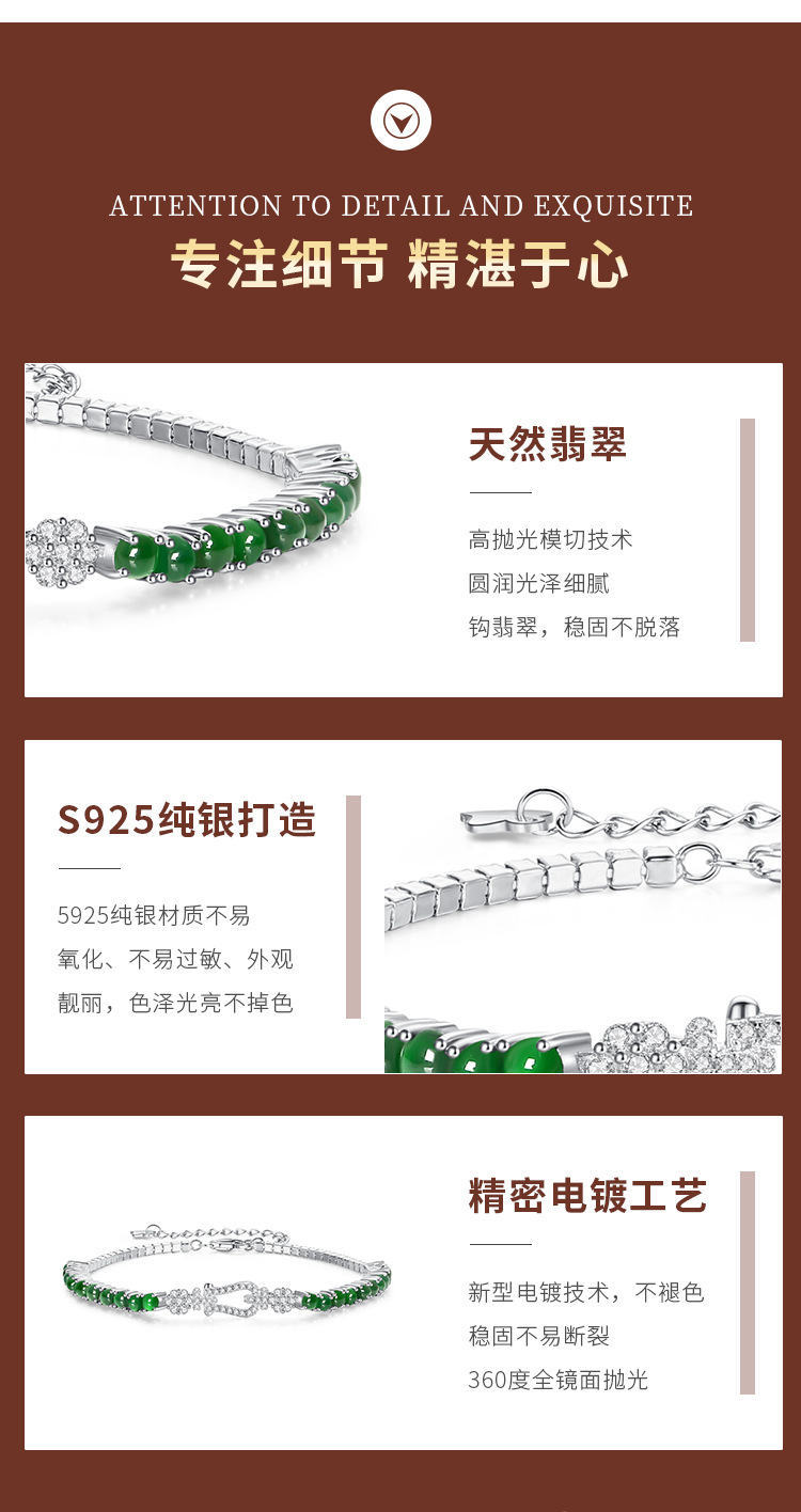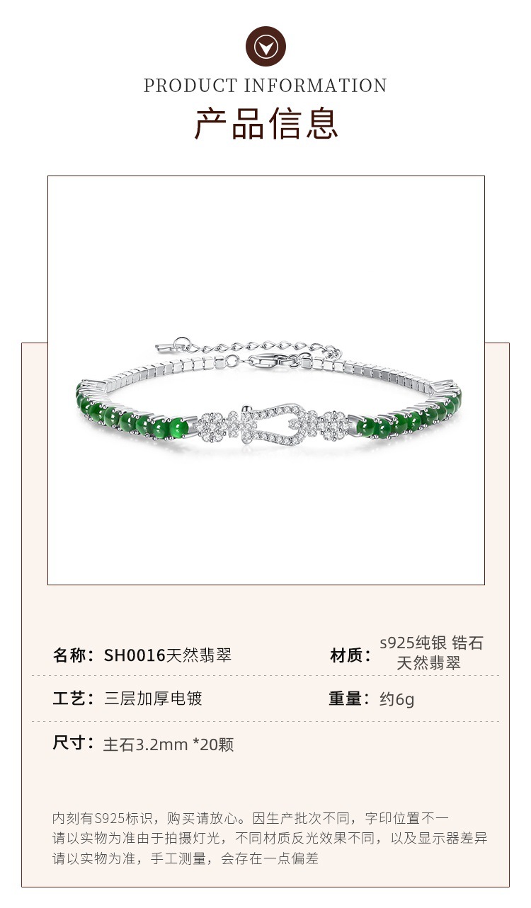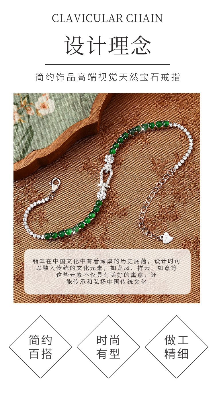 S925 plata de ley, jadeíta natural A, material peligroso, hebilla de lujo, pulsera, diseño de nicho, estilo de lujo ligero de alta calidad, fábrica al por mayor