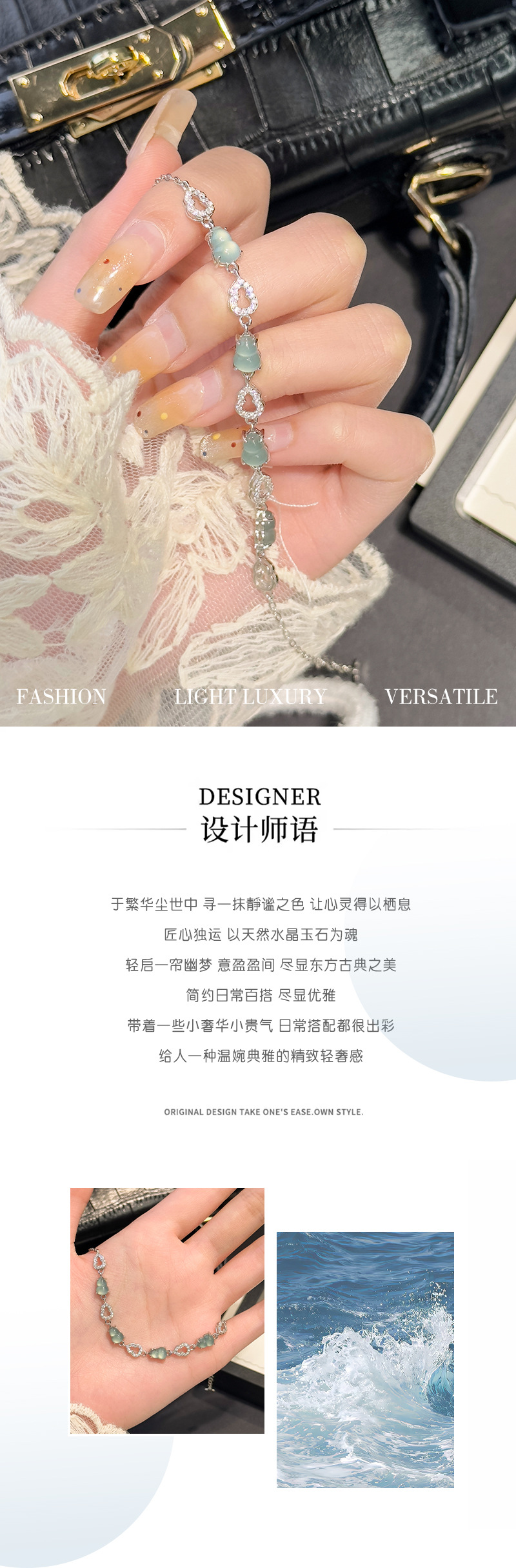 Nueva calabaza china plata esterlina s925 pulsera mujer agua azul natural jade material peligroso estilo de marea nacional retro exquisito estilo hueco