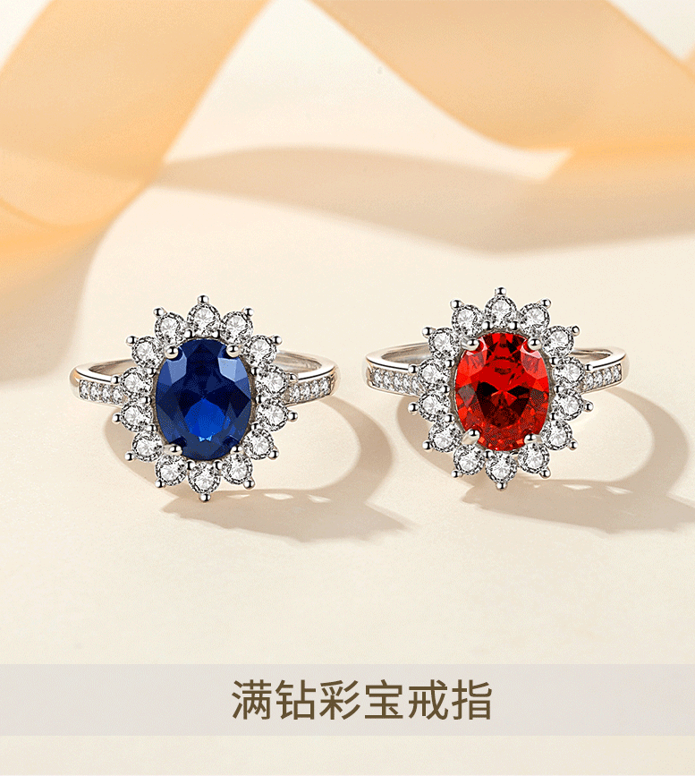 S925 plata esterlina nuevo colorido tesoro océano corazón con incrustaciones de zafiro grupo con incrustaciones de anillo de transmisión en vivo europeo y americano transfronterizo anillo de las mujeres