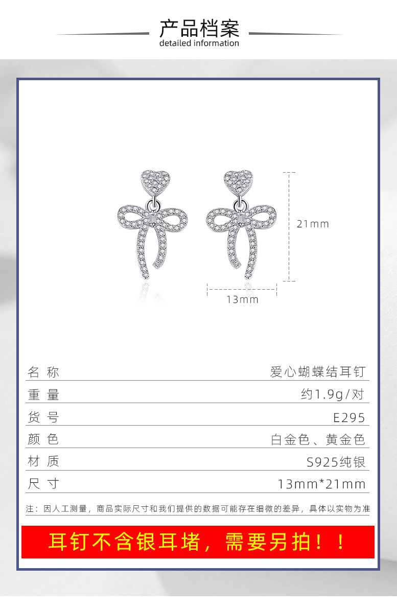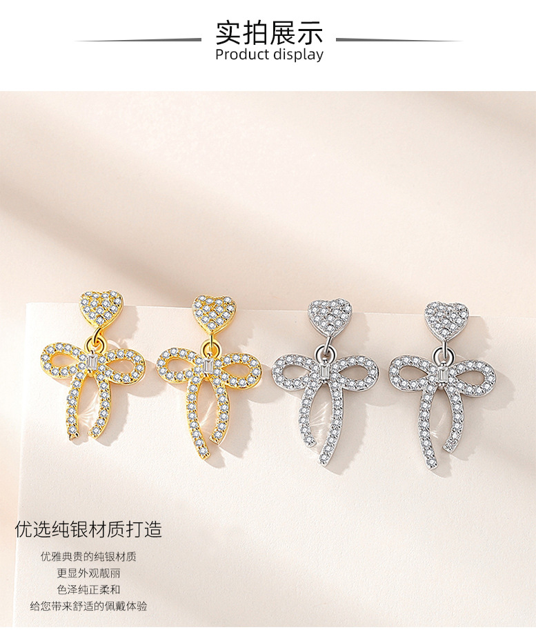S925 precioso arco pendientes de plata esterlina 925 al por mayor de diamantes llenos pendientes de plata aguja femenina lindo arco pendientes