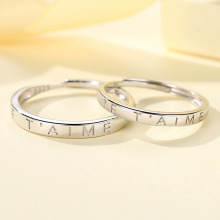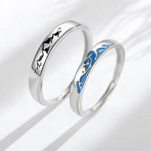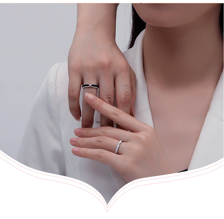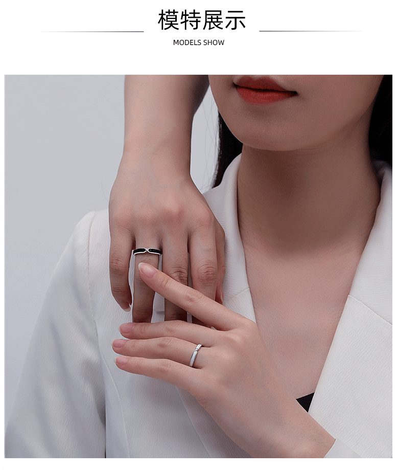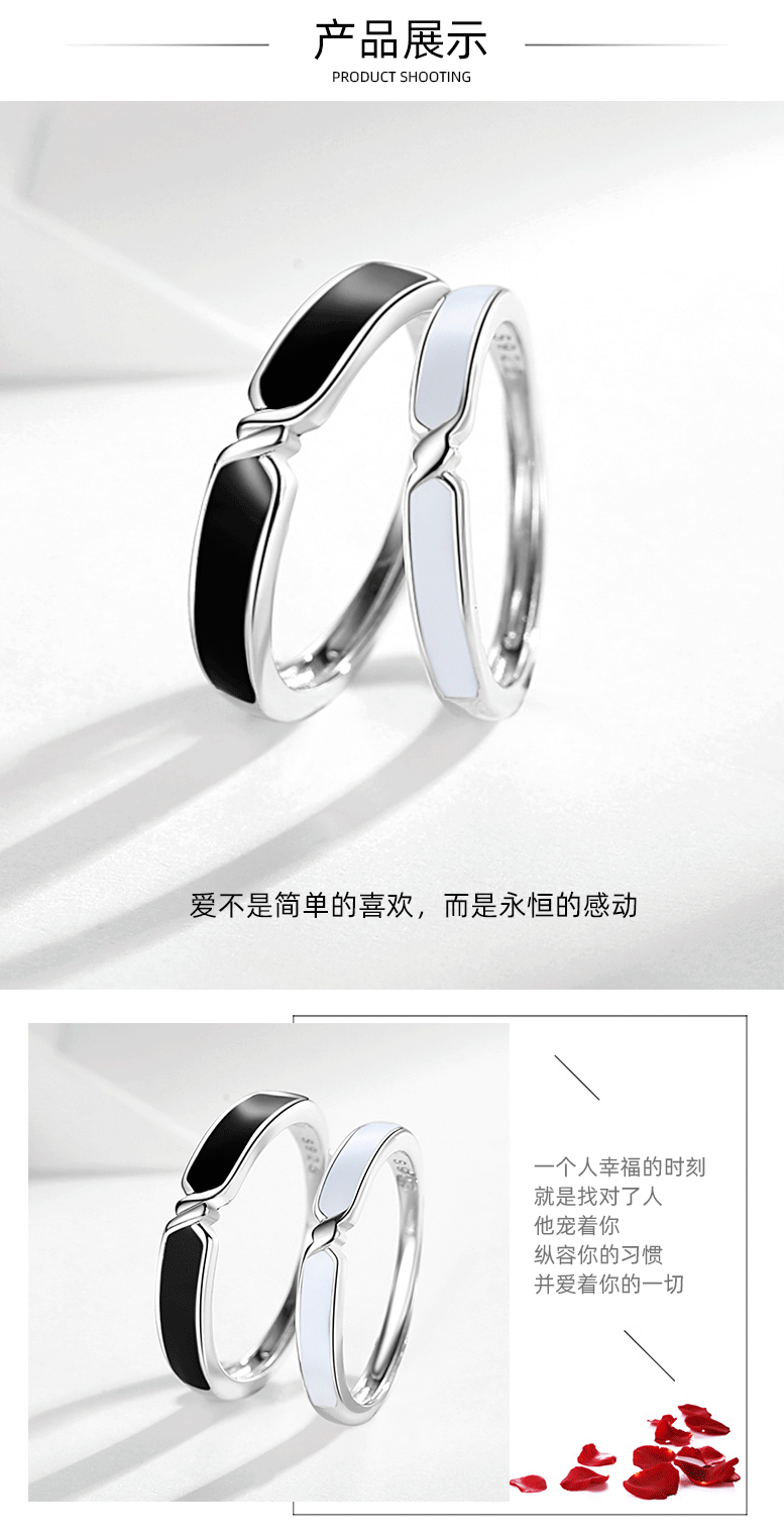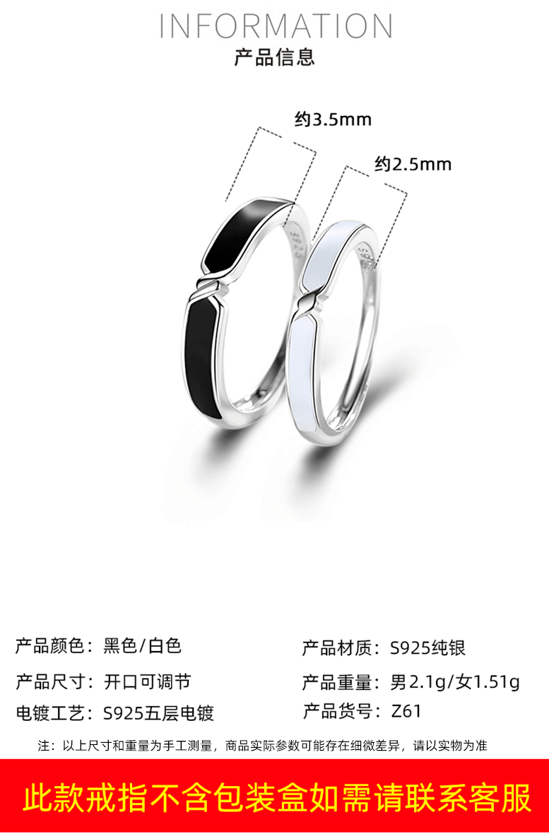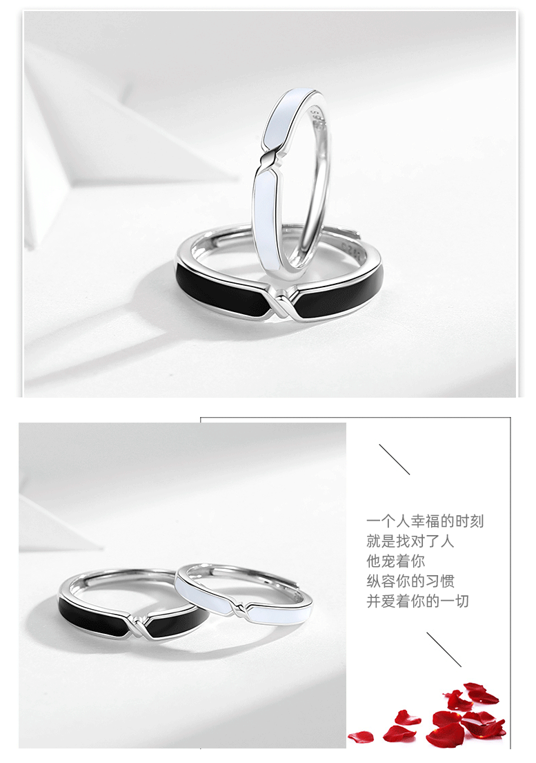 Anillo de pareja de plata esterlina S925 estilo japonés y coreano anillo de un par anillo de nicho 925 plata esterlina anillo abierto epoxi blanco y negro