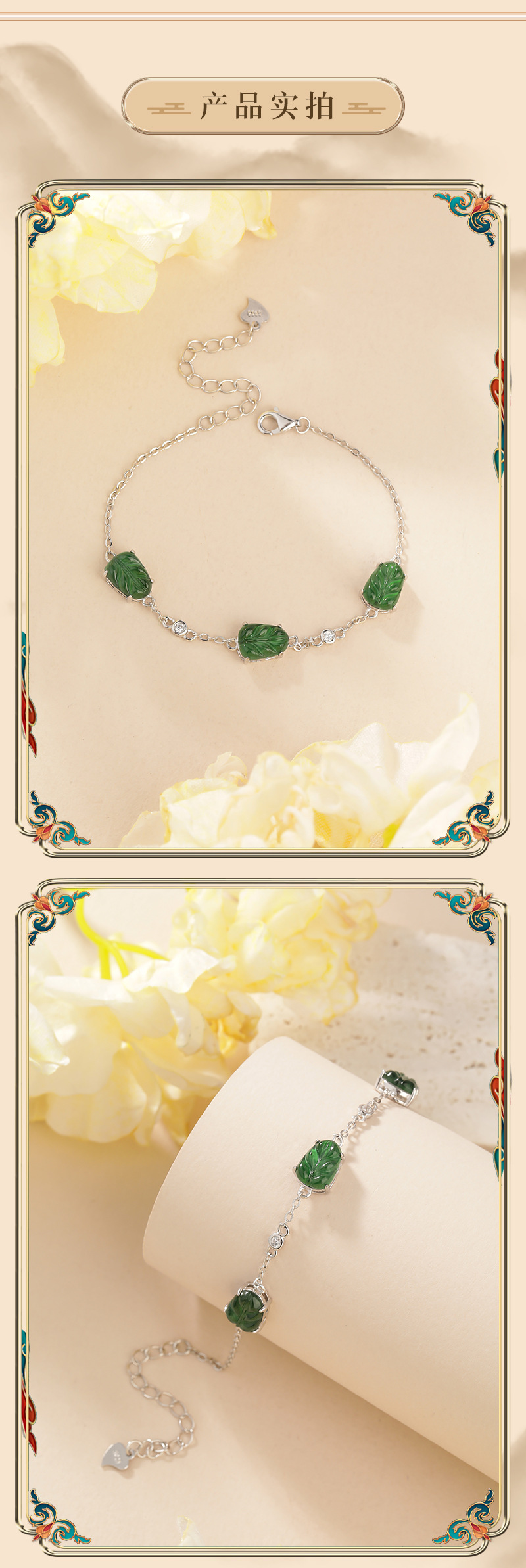 | Colores | Pulsera de hoja de plata esterlina esmeralda |