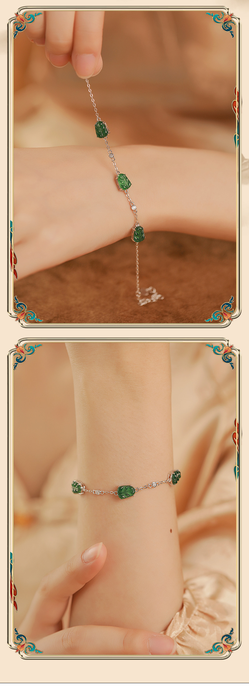 Pulsera de jade natural S925 Pulsera de hoja de plata esterlina para mujer, incrustaciones de plata, material peligroso, tipo de hielo, diseño de nicho, sentido avanzado al por mayor