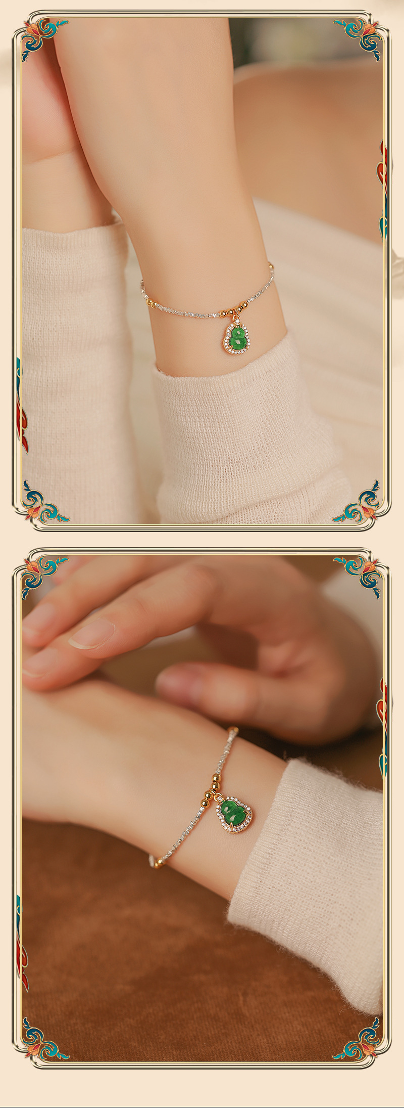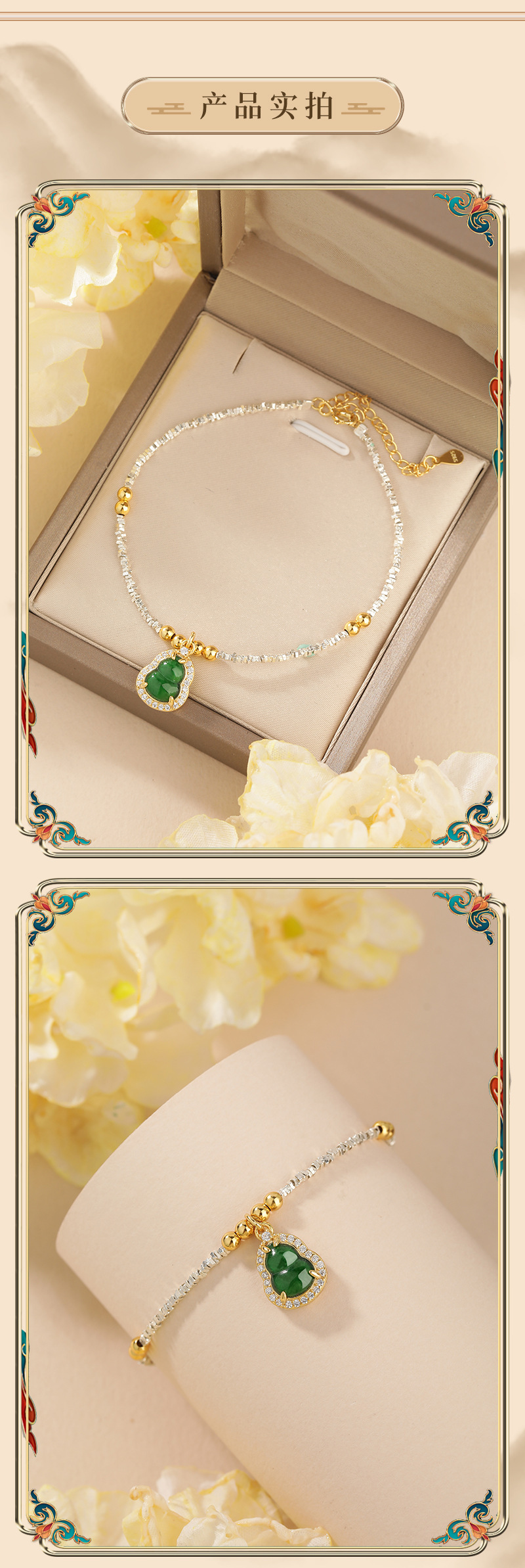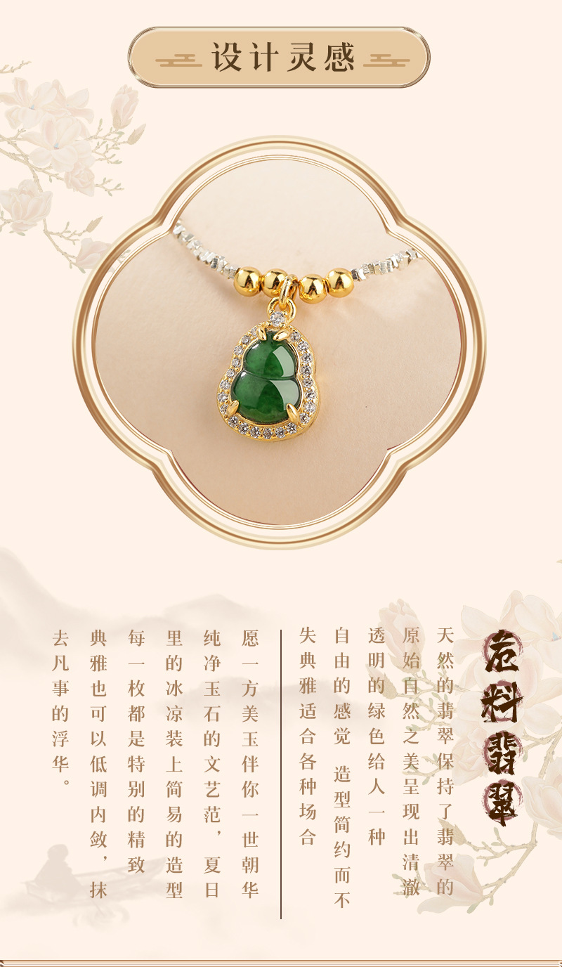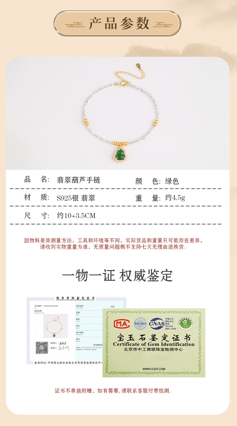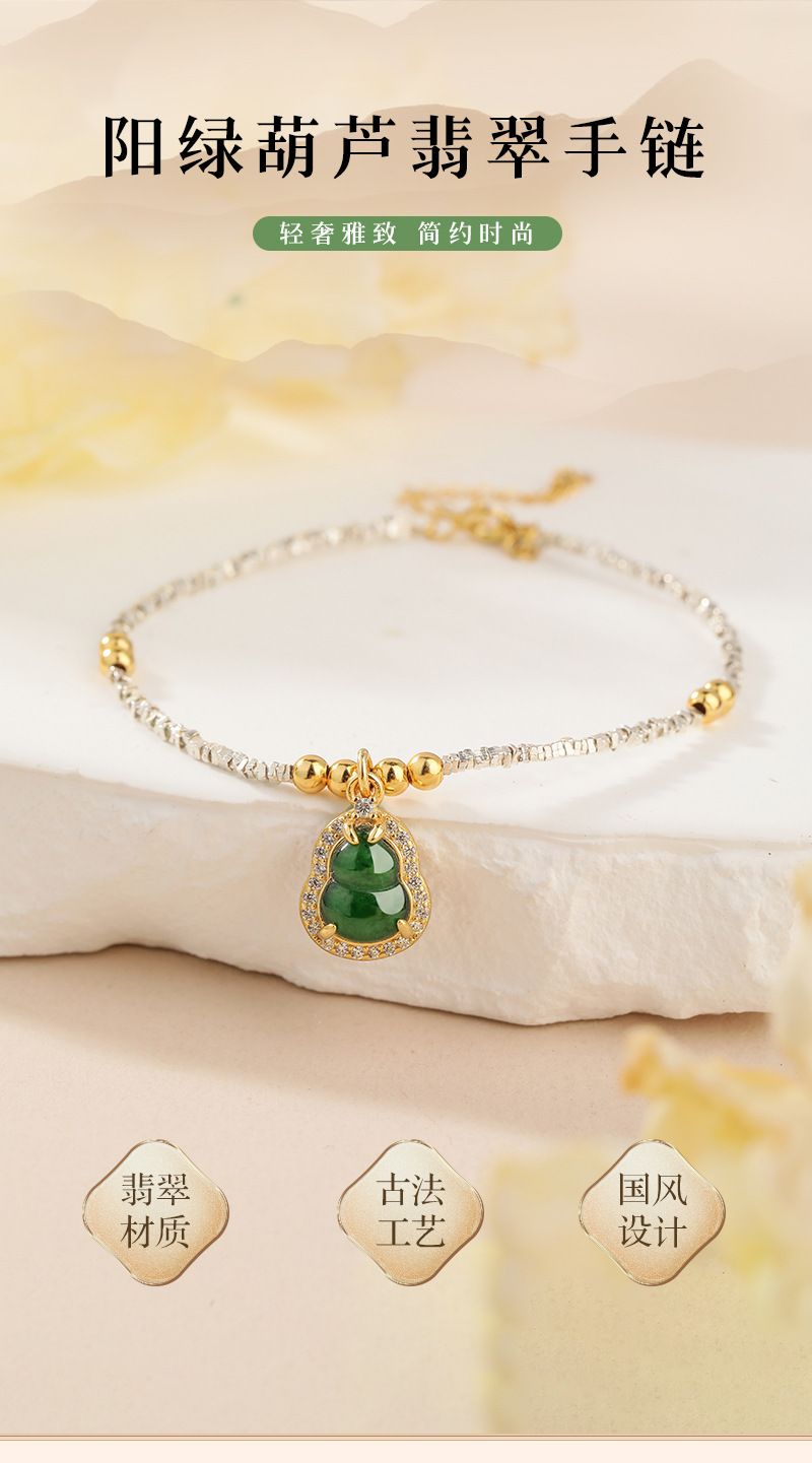 Material peligroso natural calabaza de jade diseño de plata rota pulsera plata esterlina s925 joyería exquisita de alta calidad fábrica al por mayor