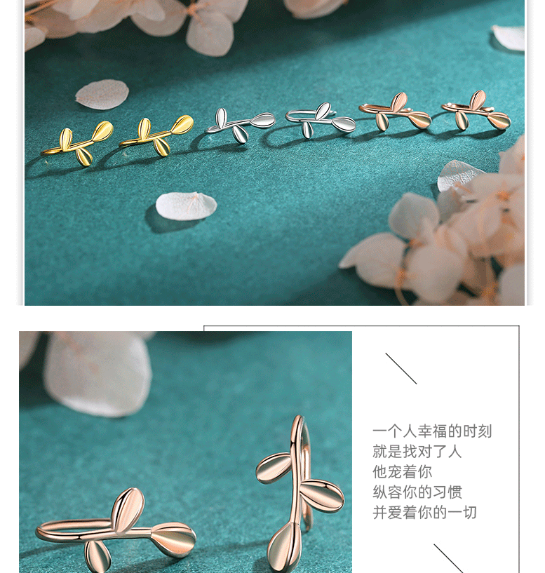 Brotado hoja pequeña S925 pendientes plata esterlina hoja pequeña tierna hoja oreja hueso clip joyería japonesa y coreana lindo mini percha