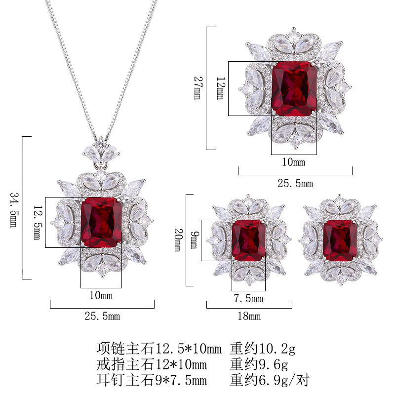 Zhuang Sheng joyas cobre inferior chapado en oro Nueva simulación rojo corindón luz rectangular lujo textura traje 10*12-7*9