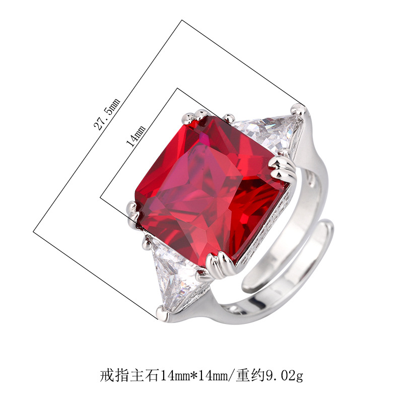 2023 nuevo estilo zhuang sheng joyería de cobre inferior chapado en oro de moda europea y americana imitación color tesoro princesa cuadrado 14*14 anillo para mujeres