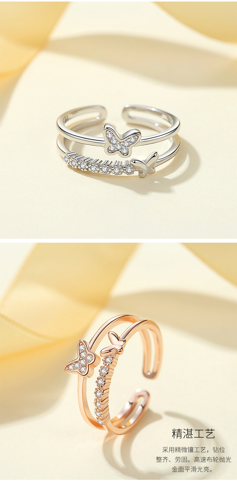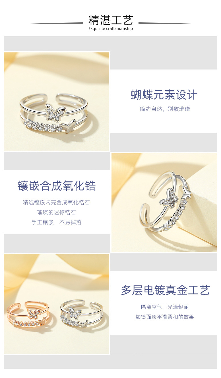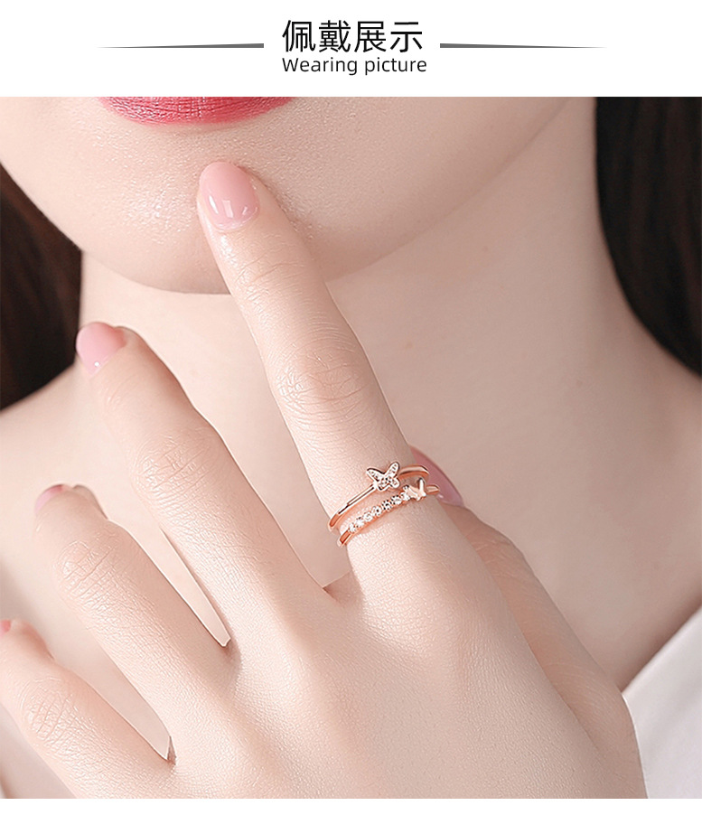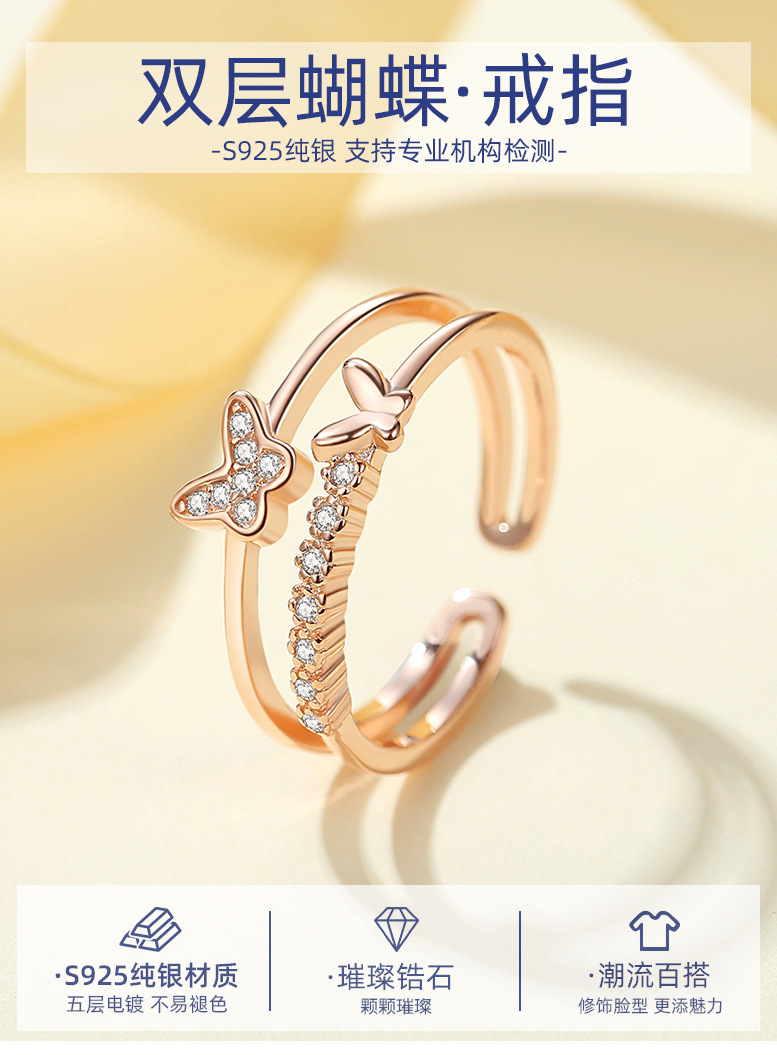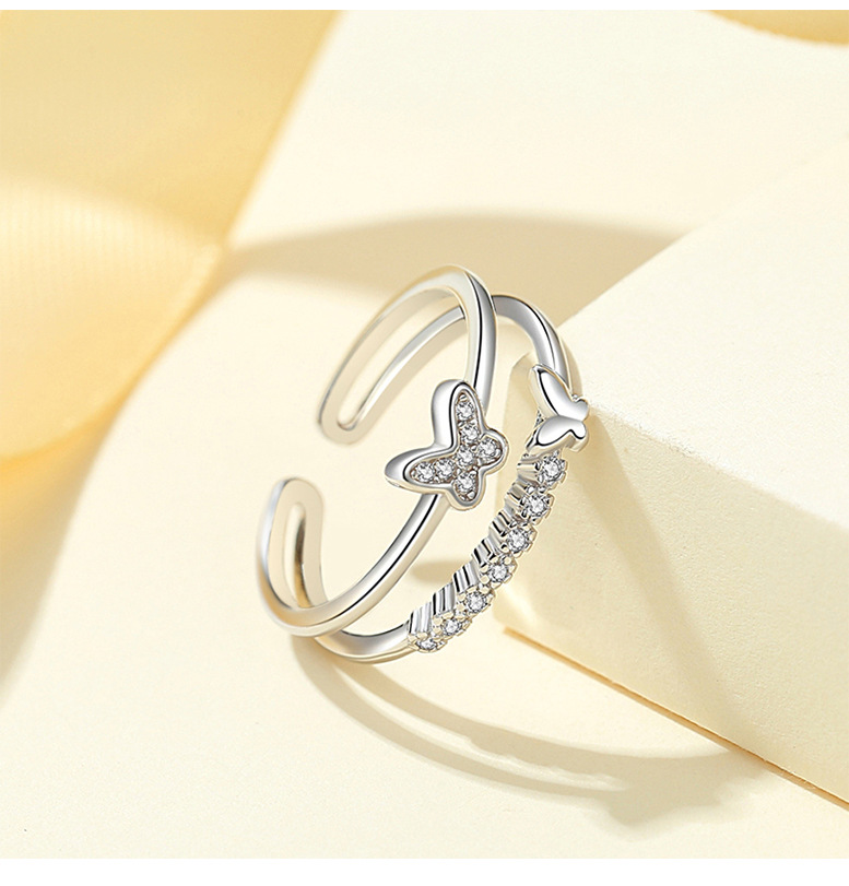 Anillo de plata esterlina S925 anillo femenino ins popular neto rojo japonés coreano anillo nicho diseño viento frío mariposa anillo ajustable abierto