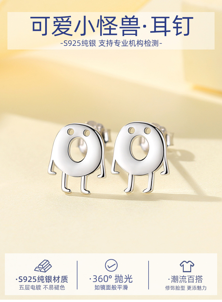 S925 pendientes de plata esterlina pendientes de rosquilla divertidos pendientes de plata 925 al por mayor pendientes de plata lisos diseño personalizado sentido nicho