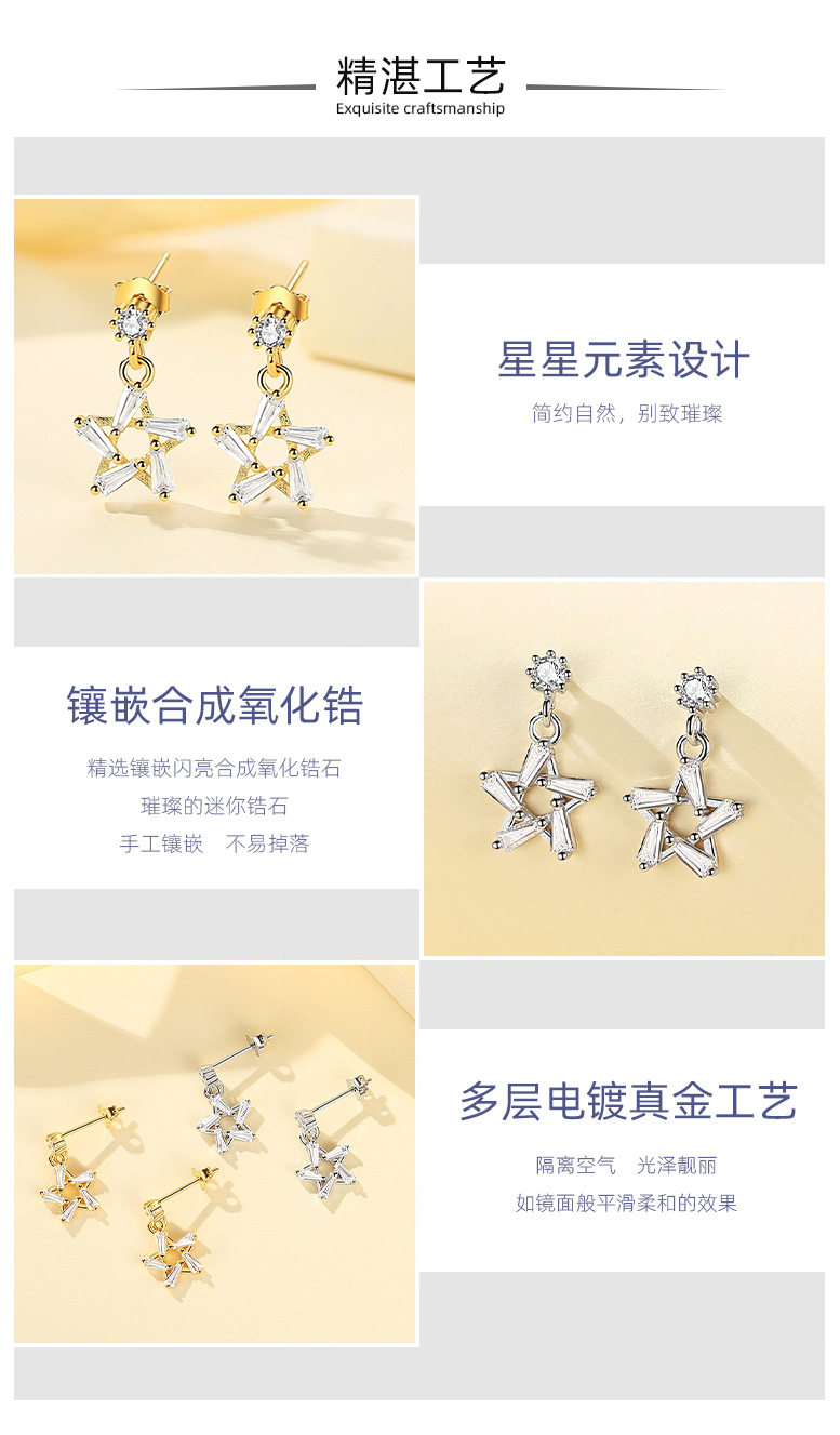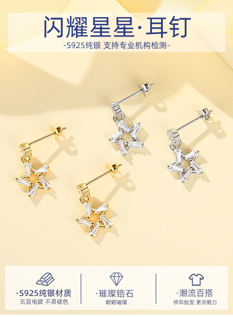 S925 plata esterlina estrella borla pendientes de moda pendientes huecos accesorios creativos europeos y americanos transfronteriza nueva venta al por mayor