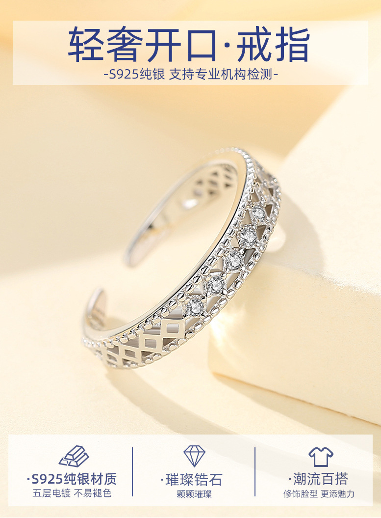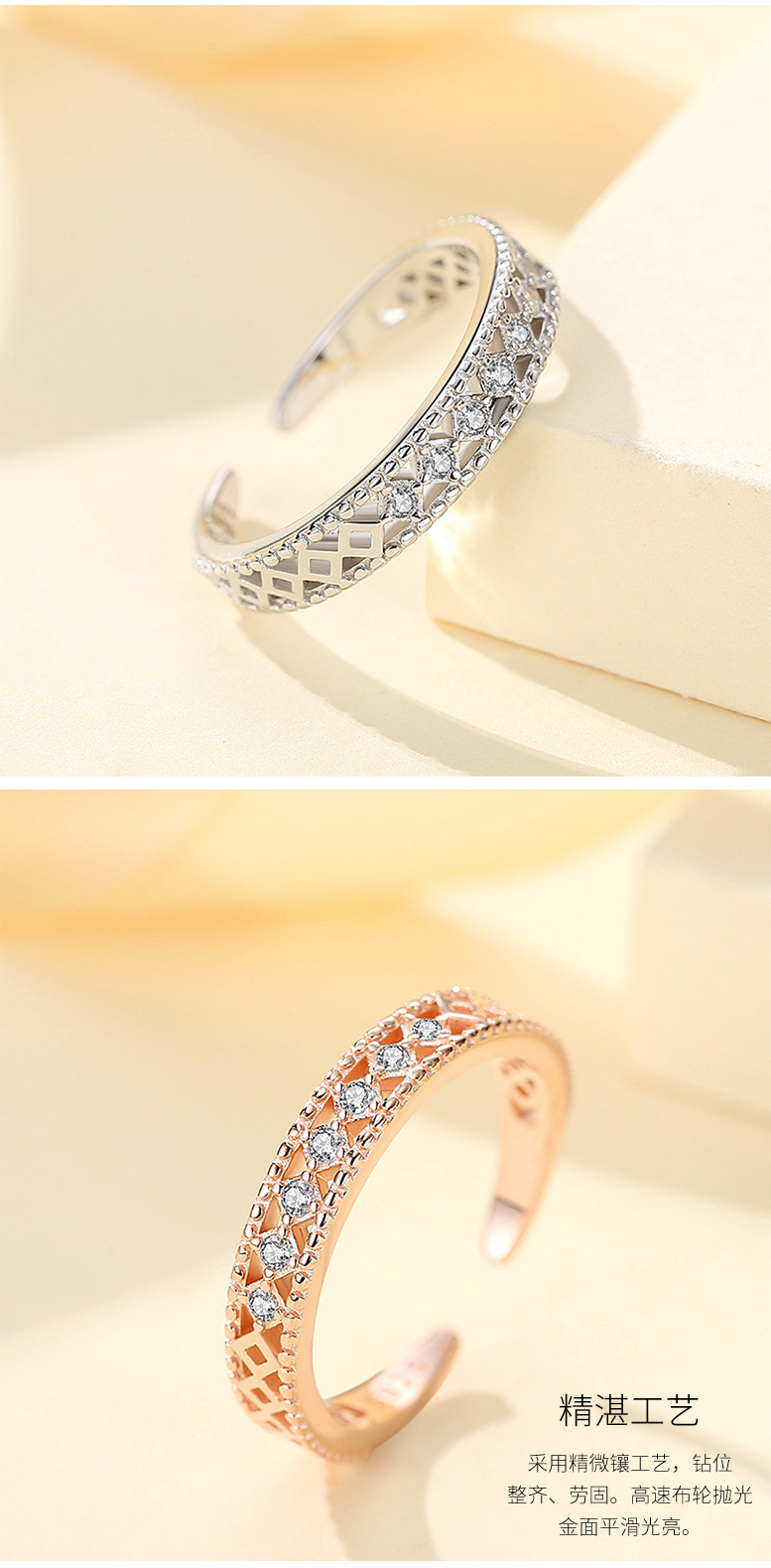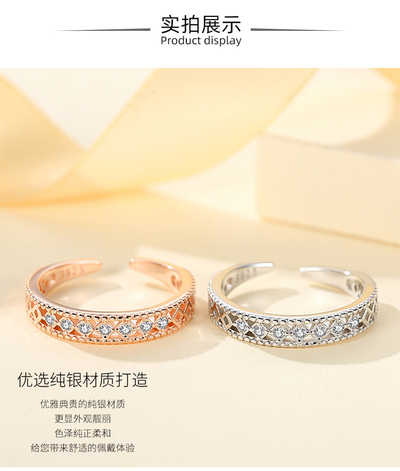 S925 plata esterlina transfronteriza dedo índice hueco solo anillo femenino estilo europeo y americano Luz de lujo micro incrustaciones moda anillo abierto moda venta al por mayor