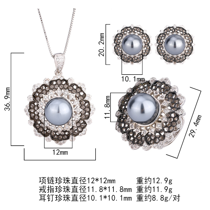 2024 nuevo estilo Zhuang Shengsheng joyería fondo de cobre chapado en gris perla moda retro juego de trefilado 12-10mm