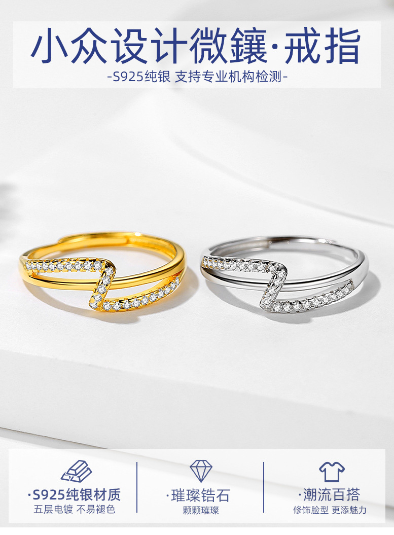 Plata esterlina s925 línea anillo femenino estilo japonés y coreano diseño cruzado anillo femenino completo diamante ins estilo neto rojo moda