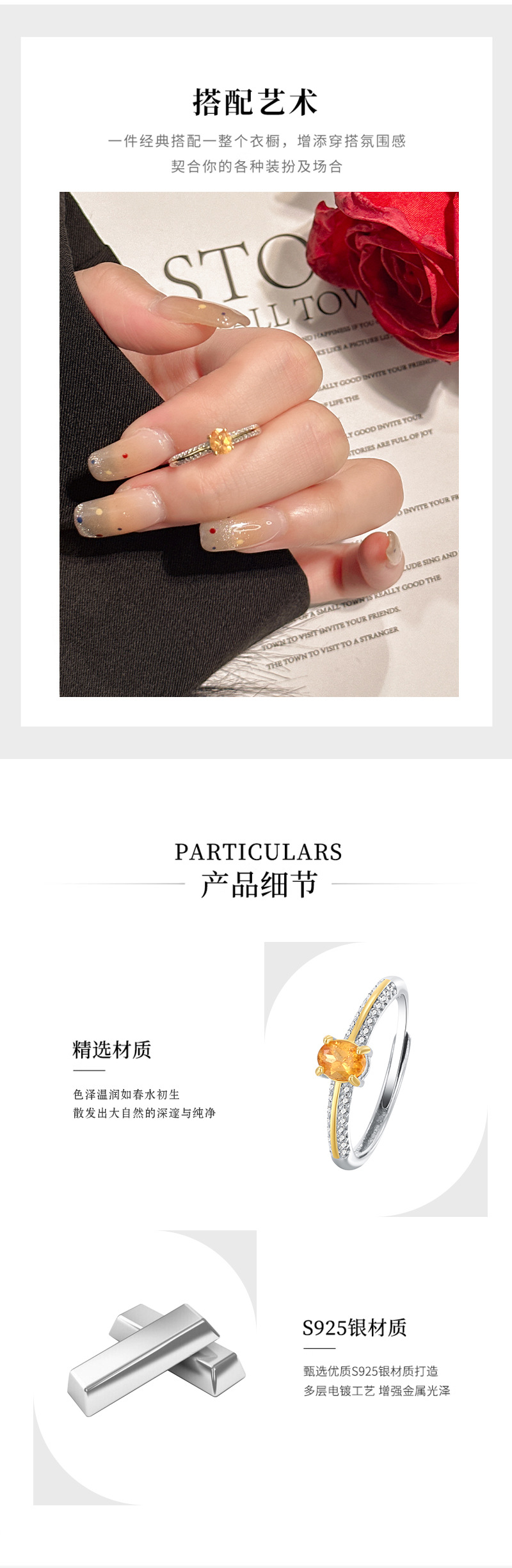 Piedra Fanta amarilla natural s925 con incrustaciones de plata esterlina anillo simple personalidad femenina tendencia estilo ins atmósfera de moda