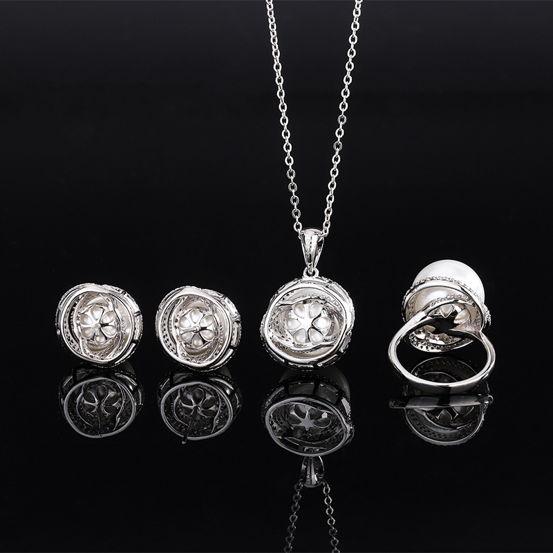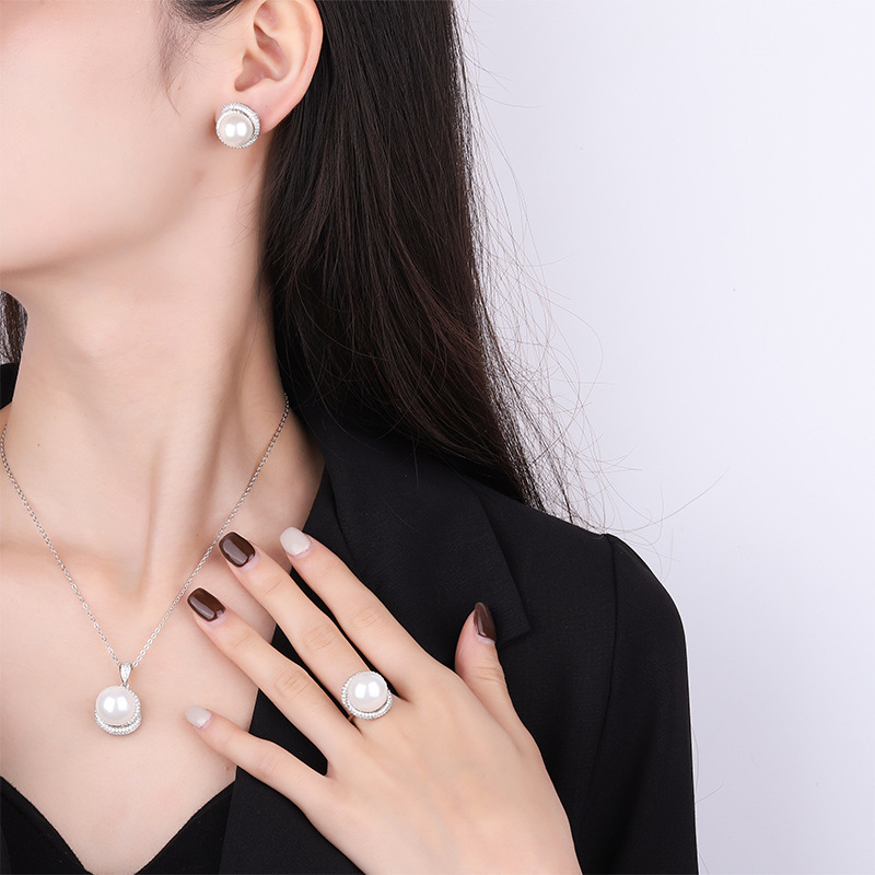 Zhuang Sheng joyería S925 plata con incrustaciones Aobei Madre de la perla de las mujeres cuentas grises todo fósforo colgante traje 14 mm12mm