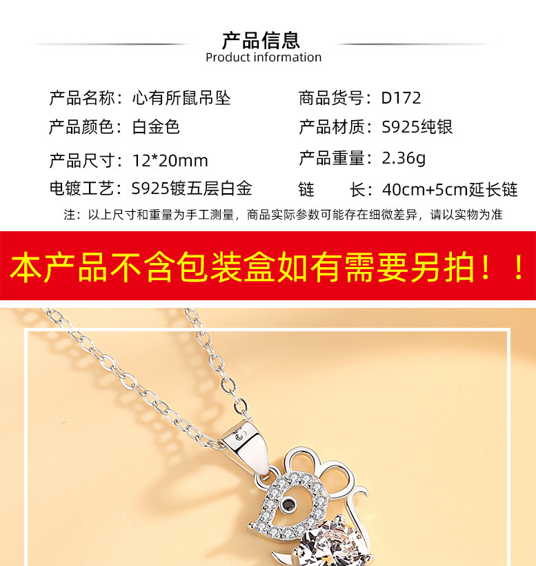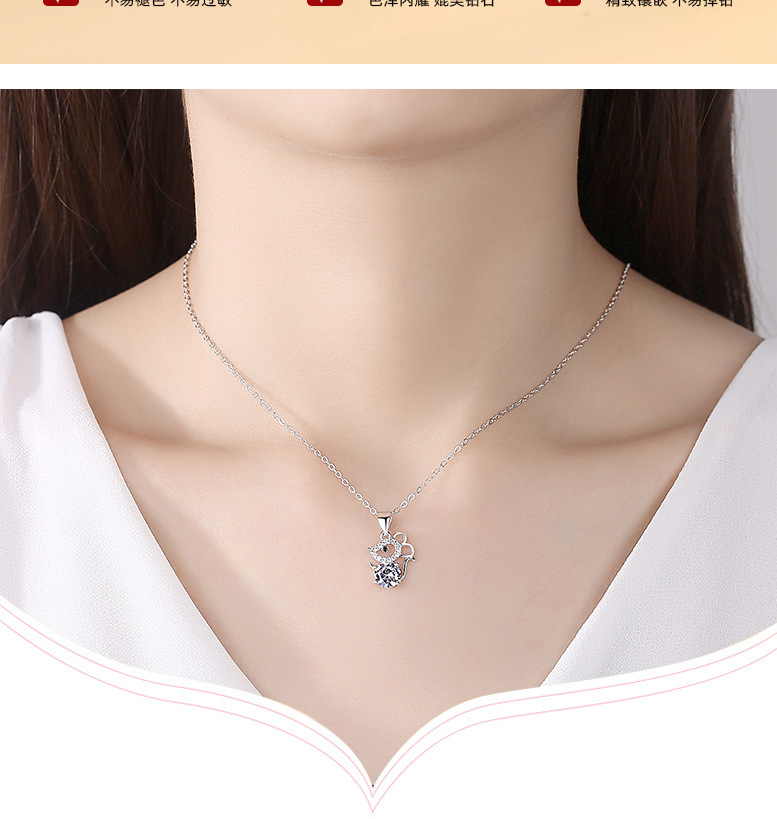 Collar de plata esterlina s925 ratón colgante de plata de ley lindo ratón de dibujos animados colgante de moda nacional Zodiaco moda femenina Cadena de clavícula