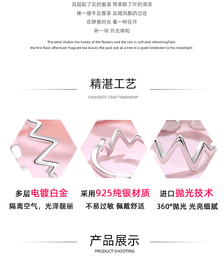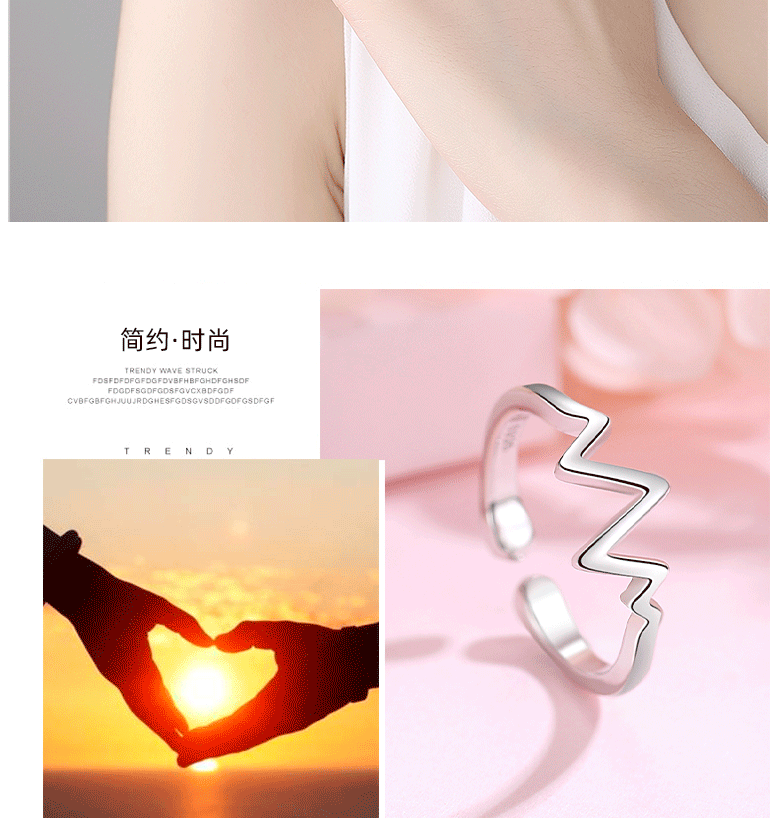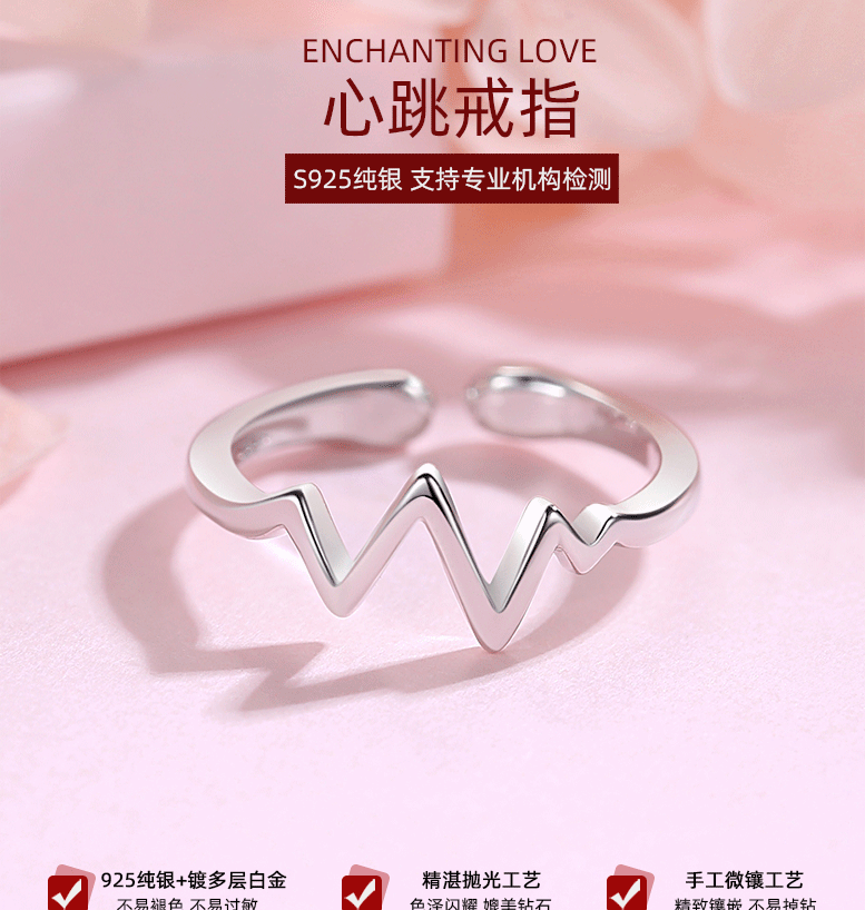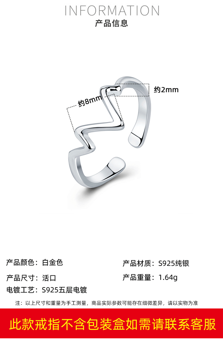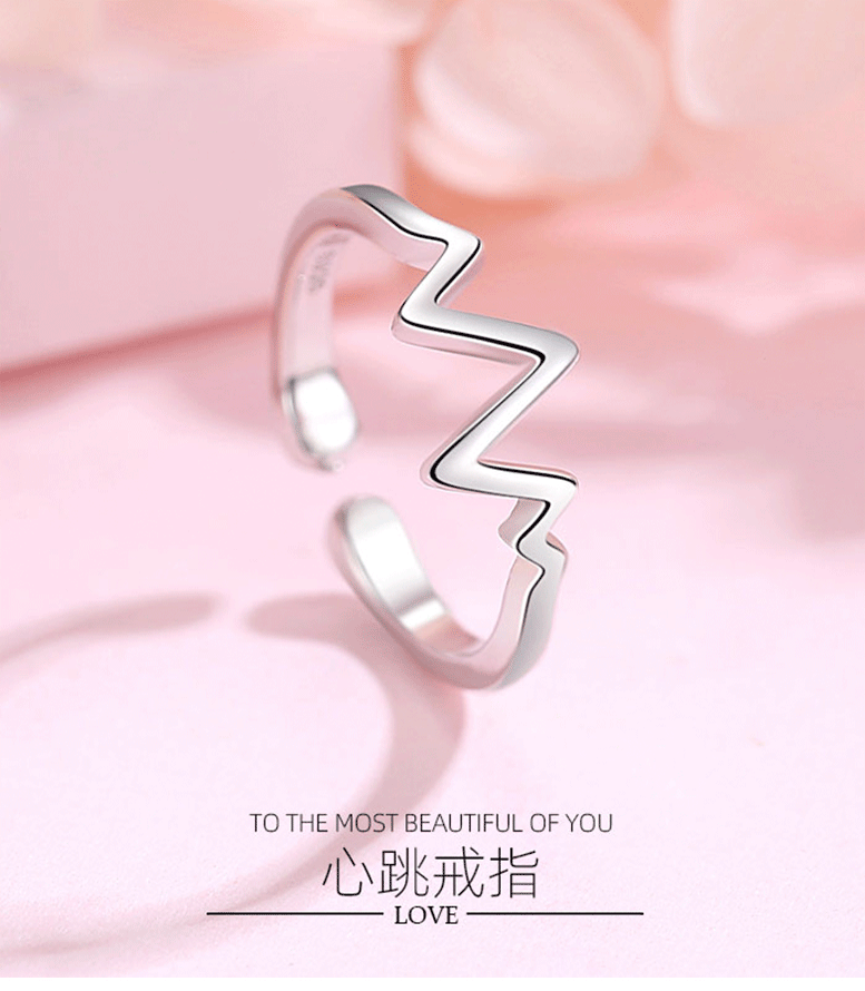 S925 anillo de plata personalidad femenina temperamento rayo latido del corazón japonés y coreano anillo abierto estilo étnico moda femenina anillo de cola