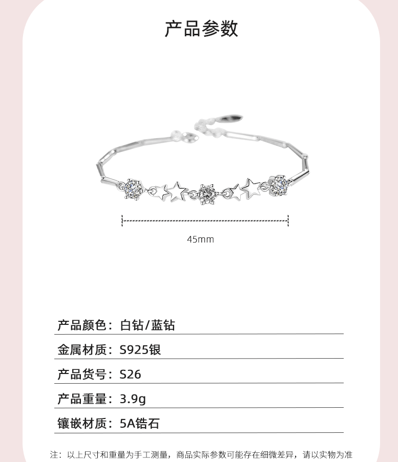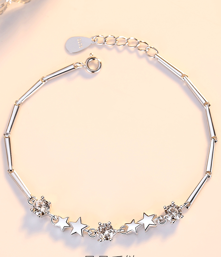 Verano y otoño moda simple pulsera mujer S925 plata circón estrella conectada pulsera nicho joyería de diseño