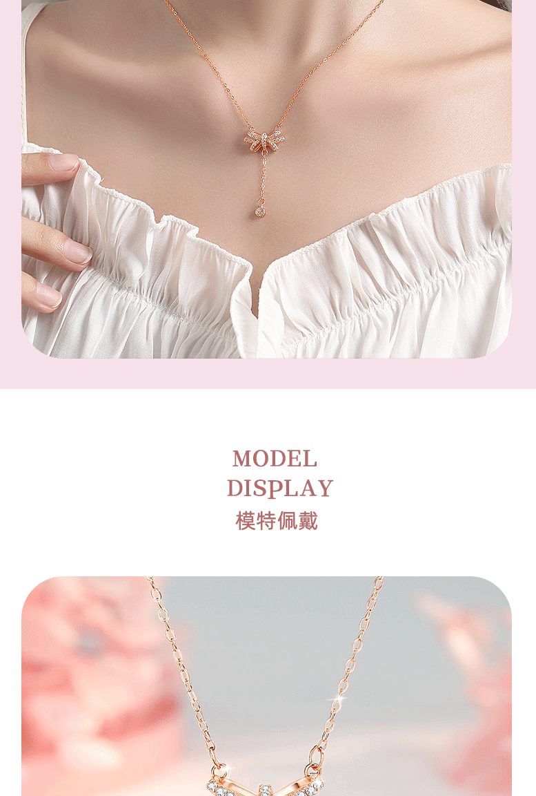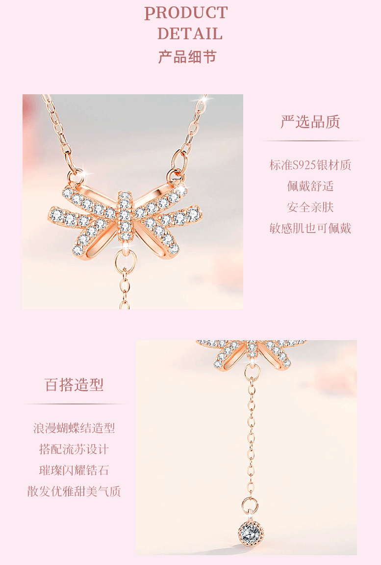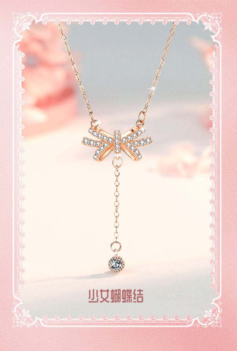 S925 plata con diamantes, lazo de niña, collar con borlas, temperamento fresco pequeño, diseño de moda salvaje, cadena de clavícula