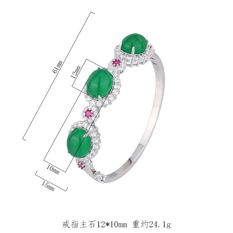 Zhuang Live joyas de cobre inferior chapado en oro simulación rojo corindón Calcedonia verde superficie diamante con incrustaciones pulsera piedra principal 10*12
