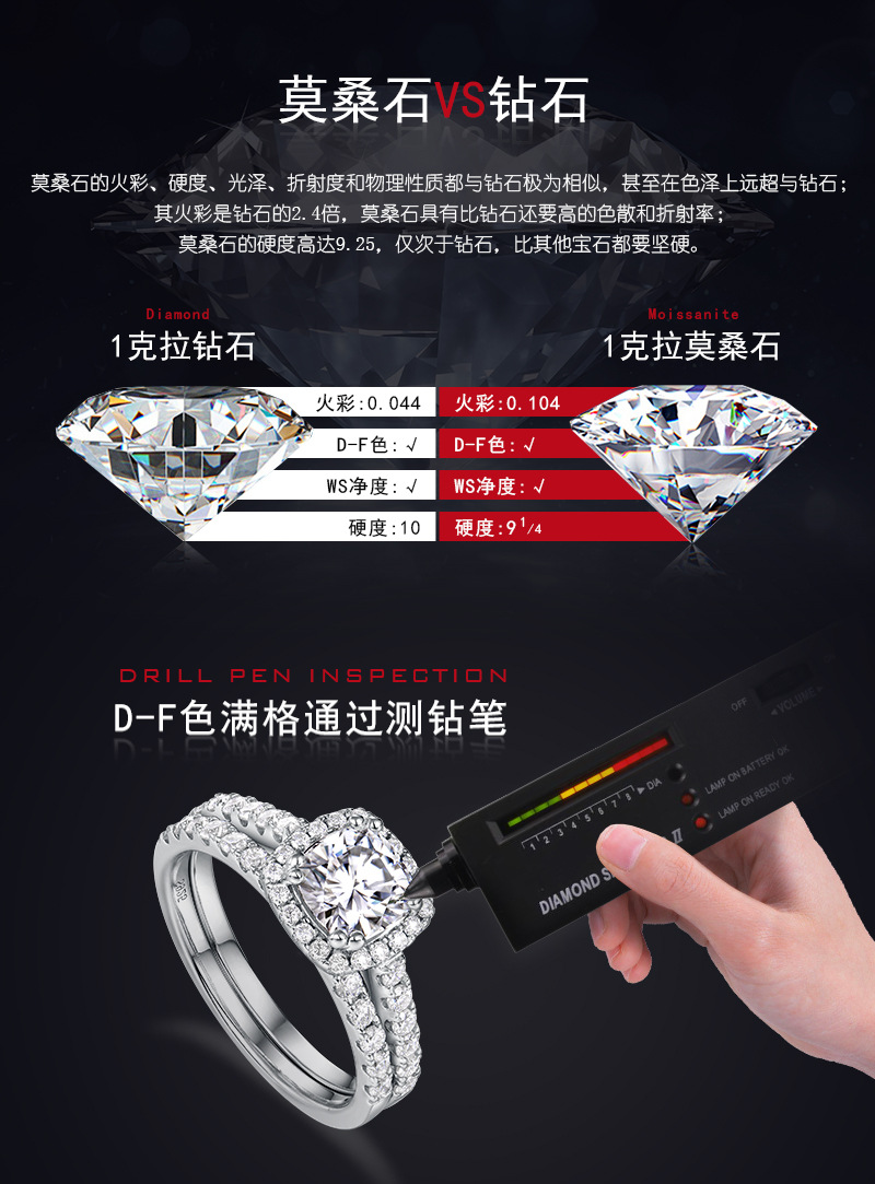 Anillo de diamantes con luz de moissanita en forma de corazón de amor transfronterizo S925 con incrustaciones de plata, tesoro de color brillante, propuesta de matrimonio, anillo de compromiso, lujo ligero